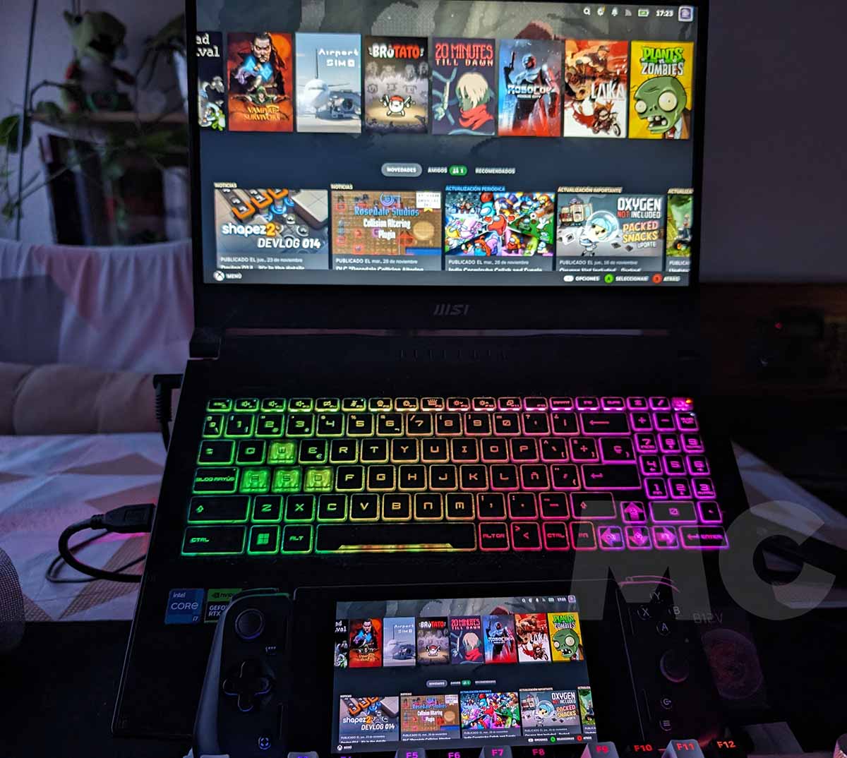En este caso, claro, debemos tener en cuenta que el rendimiento del equipo anfitrión es clave, pues es en el que se están ejecutando los juegos. Así, configurados en el propio PC para que su rendimiento en local fuera óptimo, los jugué a través de Steam Link en la Razer Edge y, en todos los casos, la experiencia fue totalmente fluida. Como puedes ver en la imagen superior, hice esta prueba frente al portátil, a la búsqueda de posibles divergencias entre lo que sucedía en el PC y lo que yo veía en la consola, pero la correspondencia entre ambas pantallas fue absoluta.
