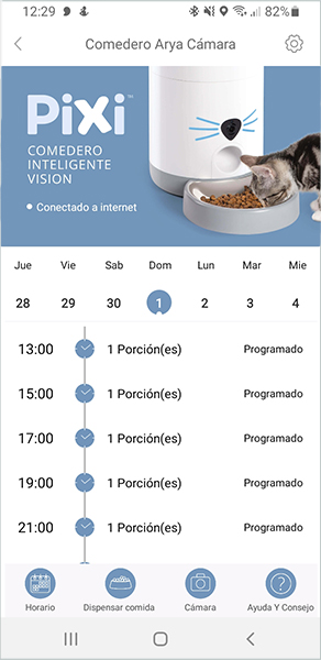 En cuando al sistema de alimentación, nos seguimos encontrando con las mismas limitaciones de 12 raciones diarias y un único plan de comida. Como comentábamos en el anterior análisis, echamos en falta quizás que haya más de un plan de alimentación, por si, por ejemplo, quieres darle pienso seco algún día por la mañana (en el mismo horario de siempre) pero quieres modificar o cancelar las tomas automáticas de la tarde para darle comida húmeda y hacer un plan mixto. Se trata de un tema exclusivamente de software que quizás se pueda mejorar en próximas actualizaciones.
