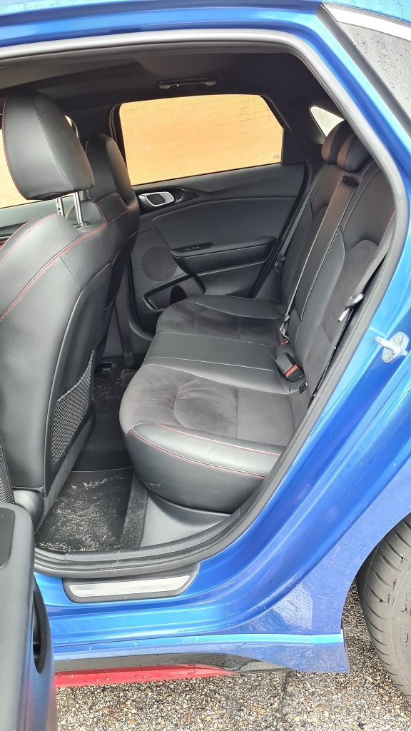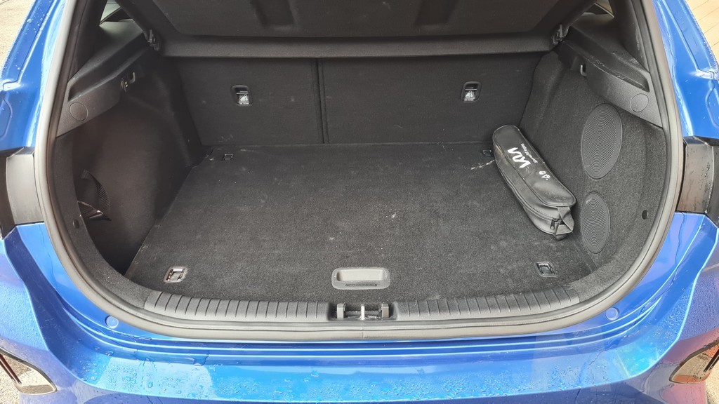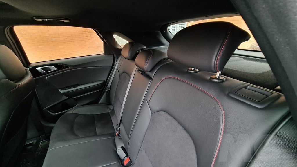 El respaldo de esta plaza central se puede abatir y convertir en reposabrazos que además dispone de espacio para colocar vasos o recipientes. Este reposabrazos queda suspendido a media altura por lo que es cómodo apoyarse en él. En lo que respecta al maletero este Ceed la capacidad ha crecido 15 litros para un total de 395 litros. El espacio disponible tiene formas regulares y es muy aprovechable. En esta variante GT encontramos que parte del espacio lateral está ocupado por un Subwoofer de 200 milímetros que forma parte del sistema de sonido de la marca JBL que tiene una buena calidad y que también se puede encontrar en el acabado Premium del modelo.