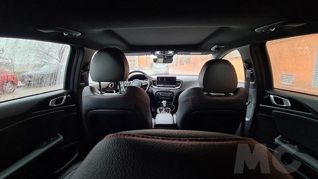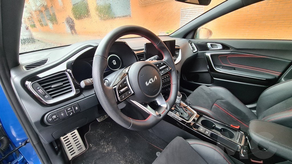 En el interior del Ceed lo que prima es la sencillez y racionalidad del diseño con presencia de botones físicos bien colocados para tener todas las funciones a mano y dos diales para configurar la temperatura del climatizador para cada zona. Los acabados, sin ser de una calidad alta, tienen buen tacto con muchos plásticos blandos y detalles como costuras simuladas en el salpicadero. Falta quizás algún acolchado para las zonas de almacenamiento. Dispone de una pantalla de información y entretenimiento de 10,25 pulgadas bien colocada en la parte superior del salpicadero que cumple con creces con su función con una muy buena legibilidad y un funcionamiento bueno en cuanto a rapidez y comodidad de uso.