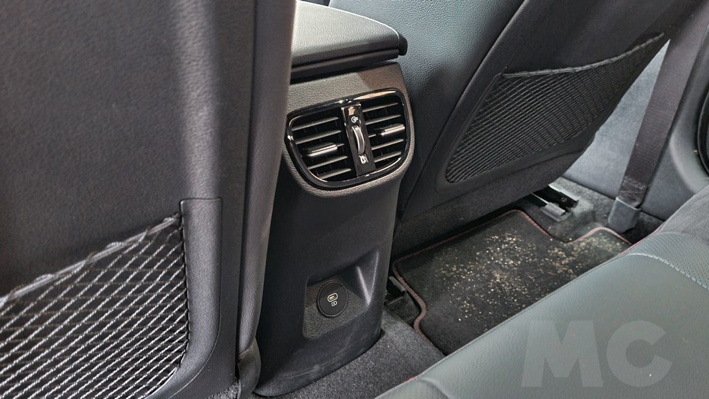 En la parte trasera se nota que se trata de un turismo de 4,3 metros y la habitabilidad, aunque es bastante buena para lo que podemos encontrar en la categoría, es algo justa para personas de más de 1,80 metros pero más que suficiente para cuatro personas de talla media. El acceso a la parte trasera es bueno gracias al ángulo de apertura de la puerta y el espacio que deja para acceder al habitáculo. La plaza central, aunque resulte estrecha cuando se suben tres personas, es más cómoda de lo que encontramos en otros turismos similares ya que el abultamiento del suelo por el tunel de transmisión no es demasiado pronunciado y se pueden colocar los pies de forma cómoda.