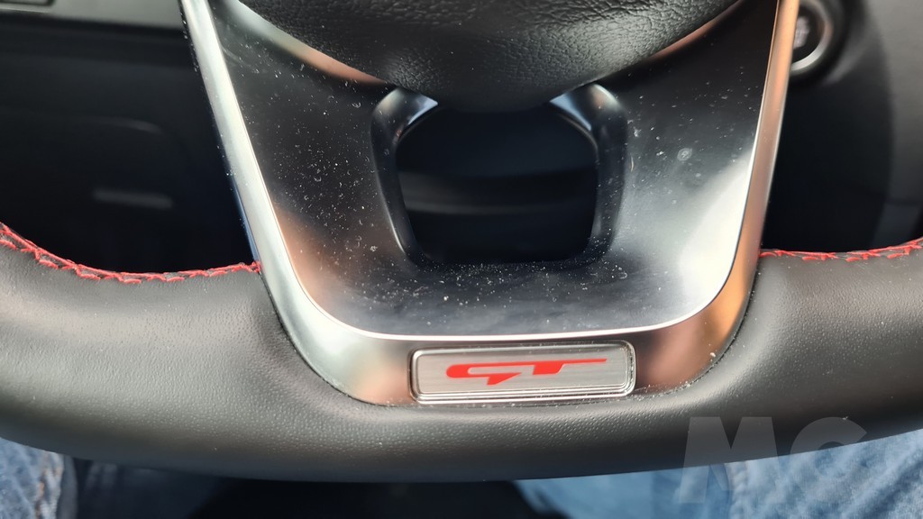 La variante GT tiene algunos detalles estéticos que la distinguen como el nombre de la versión en el volante, que está rematado con costuras en color rojo, y otros detalles estéticos en el interior también del mismo color. Los asientos son de diseño deportivo con los laterales tanto del respaldo como del asiento con piezas más envolventes. El material de los mismos es una combinación de tela con tacto y aspecto de terciopelo y material de imitación de cuero. Son cómodos y gracias a su diseño sujetan mucho más eficazmente cuando se realiza una conducción dinámica además de disponer de ajustes eléctricos.
