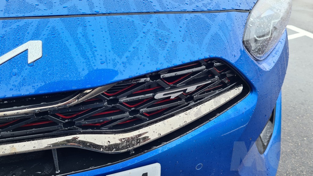 La parte delantera de este nuevo Ceed, la que más cambios estéticos recibe con respecto a la generación anterior, luce en el capó el logo rediseñado de la marca como carta de presentación. También se ha modificado el aspecto de la parrilla pintada en color negro que en esta versión GT luce el identificador de la misma. Más abajo el paragolpes también ha cambiado de diseño y para esta versión GT la toma de aire está pintada en negro con detalles de color rojo en los laterales. También de nuevo diseño los grupos ópticos LED para esta variante del Ceed.