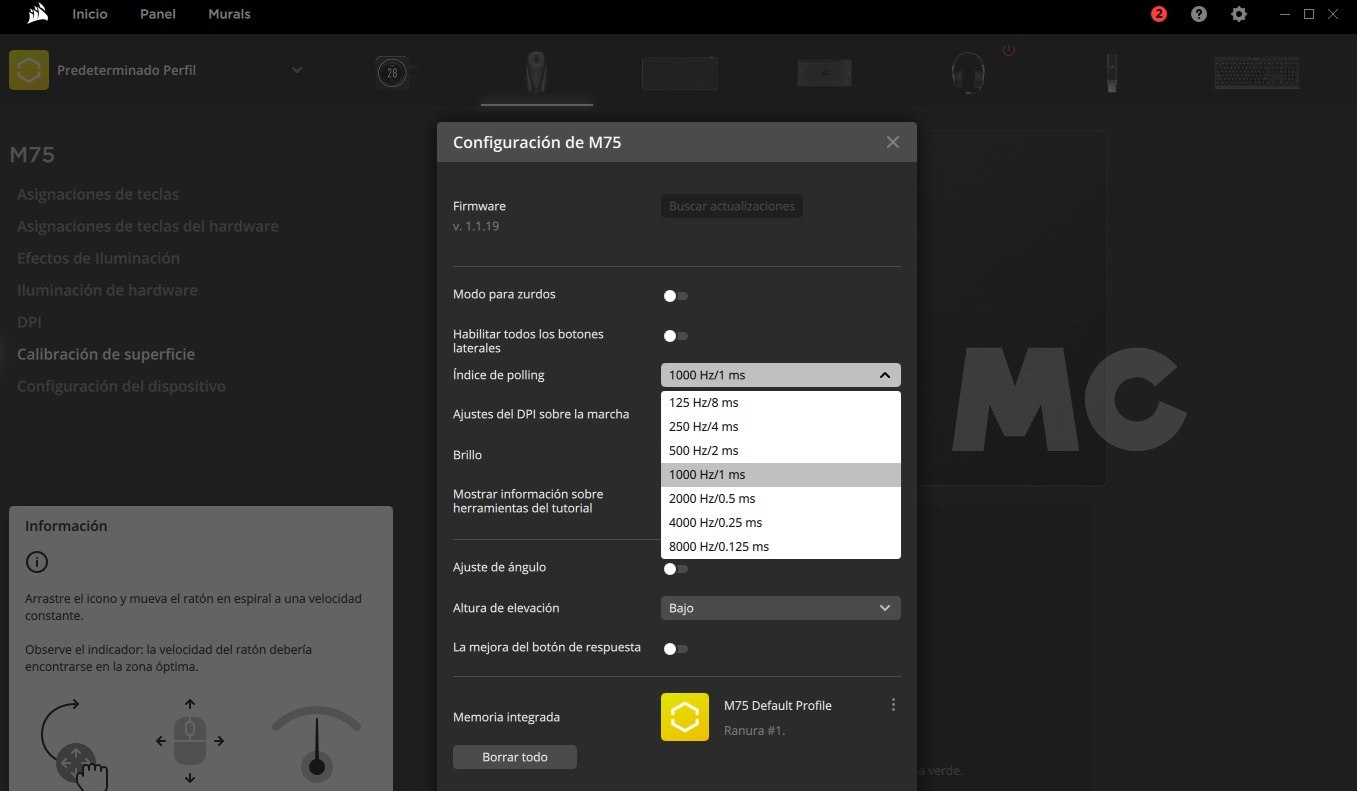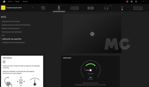 - Calibración de superficie, que es importante porque nos permitirá adaptar el seguimiento del ratón a la superficie sobre la que lo estemos utilizando, y mejorando su movimiento y la experiencia de uso en general.