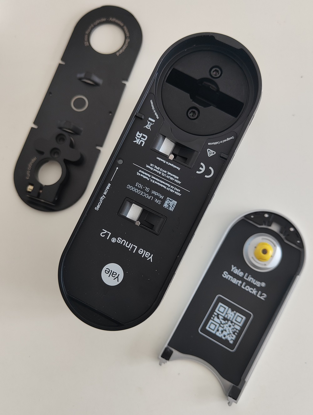 Analizando visualmente la cerradura, esta tiene un diseño ligeramente más compacto que la versión anterior; además, el sistema de apertura también se simplifica. Mientras que el linus Smart Lock tenía dos aletas traseras que servían para quitar la carcasa trasera, el L2 tiene una pletina interior que se sube o baja para ajustarla.