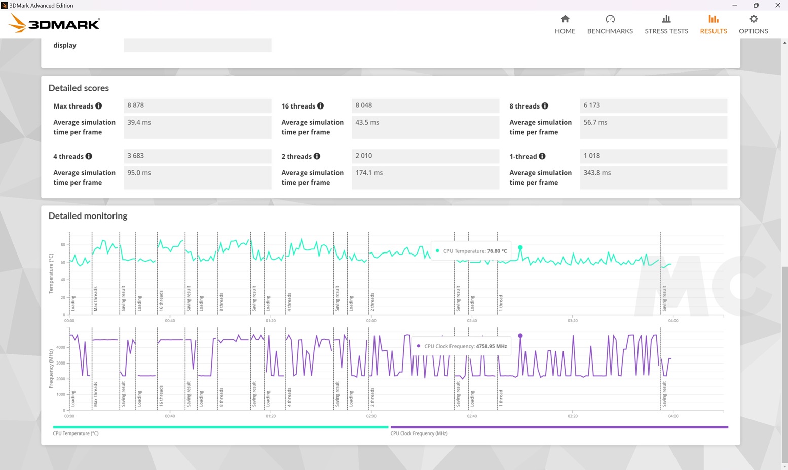 Esa mínima diferencia de puntuaciones entre una pasada y la prueba de 10 minutos nos permite descubrir algo muy importante, que el sistema de refrigeración que monta el ASUS ROG Zephyrus G16 2024 cumple a la perfección, y que no se produce ningún tipo de estrangulamiento térmico.