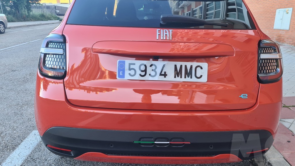 En la parte trasera lo primero que llama la atención son los grupos ópticos verticales con una forma parecida a la que tenían en el 600 diseñado por Giacosa pero más elevados, en los laterales del maletero en vez de estar cerca del paragolpes en el original. Un parachoques voluminoso y ancho sobresale en la parte inferior dando más pistas de la orientación urbana de este modelo. El portón queda algo elevado con respecto del suelo y las molduras negras que se colocan en el parachoques lucen, por lo menos en este versión La Prima, los colores de la bandera nacional italiana insertados dentro del logotipo del modelo del coche.