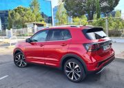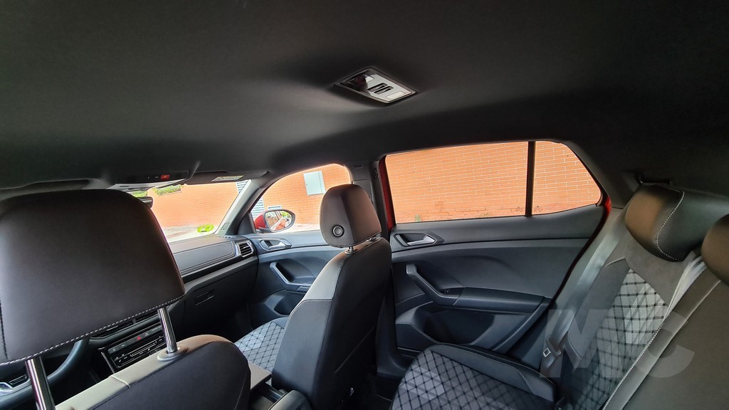 El perfil de este T-Cross es idéntico al de la generación anterior, con una línea muy parecida al T-Roc pero con un tamaño algo menor, llantas de radios de 17 pulgadas, relieves en la parte inferior de la carrocería y las barras portaequipajes en el techo para darle el toque todoterreno. En la chapa de la puerta anterior se ha colocado la letra R para distinguir el acabado deportivo de la versión que hemos podido probar. El pequeño spoiler trasero también está terminado con una moldura negra que le da un toque algo más deportivo y que corresponde al acabado que hemos mencionado.
