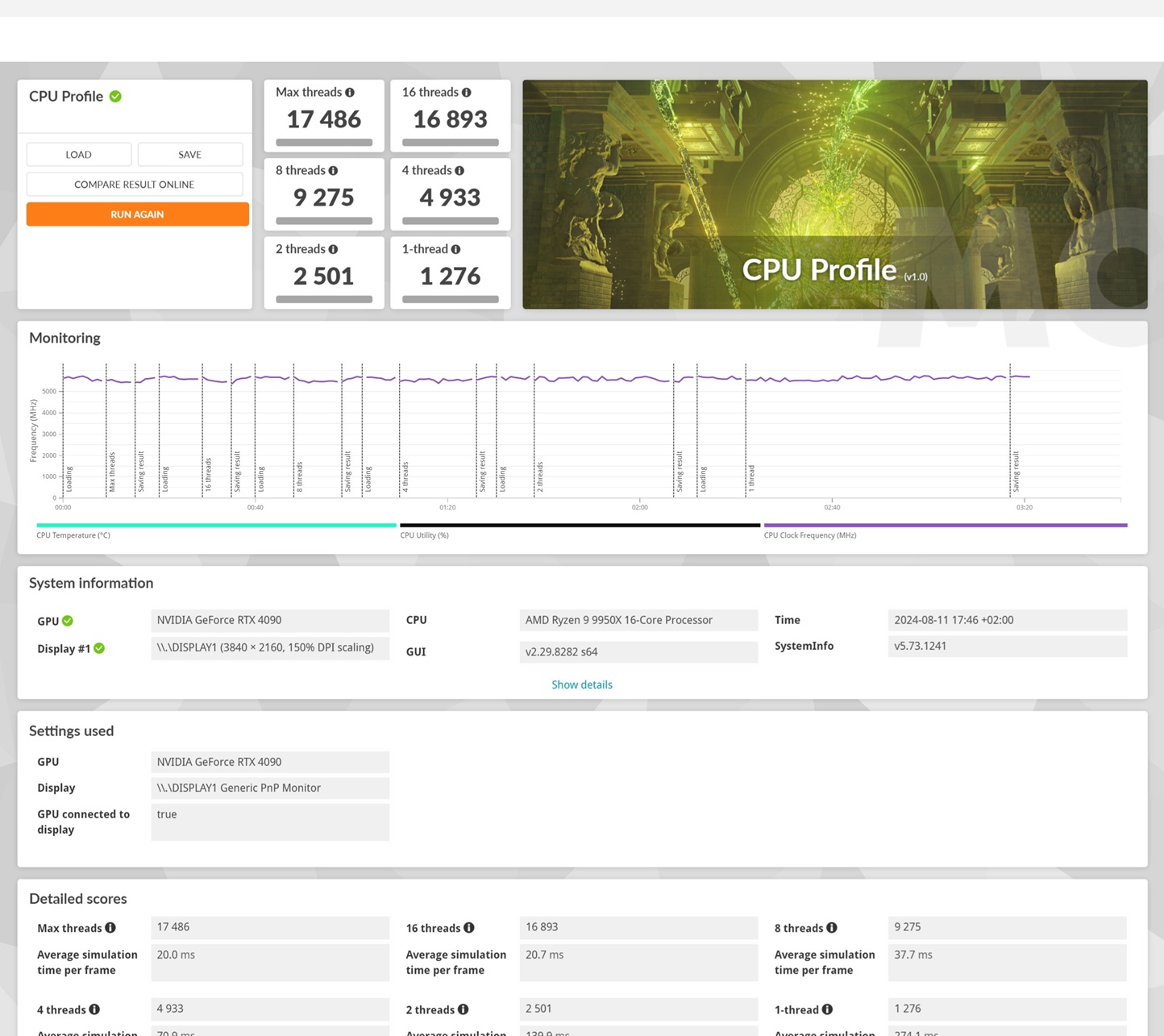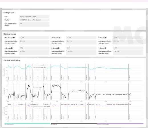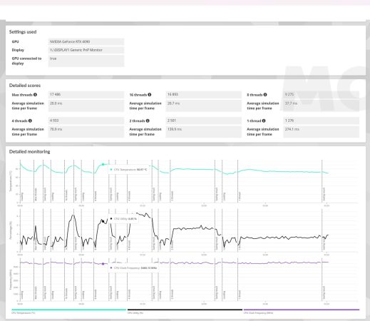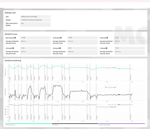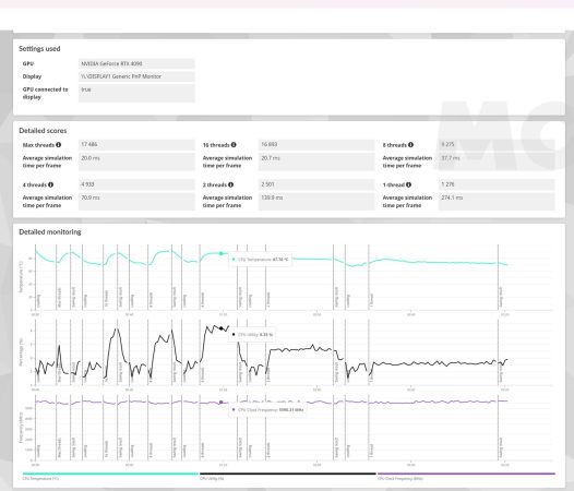 Esta es una prueba muy buena para medir no solo el rendimiento de un procesador, sino también el escalado de sus frecuencias de trabajo y de la temperatura que es capaz de alcanzar. El Ryzen 9 9950X es un procesador de 16 núcleos y 32 hilos que trabaja a una velocidad elevada, así que podemos esperar unas temperaturas altas, y un buen rendimiento.