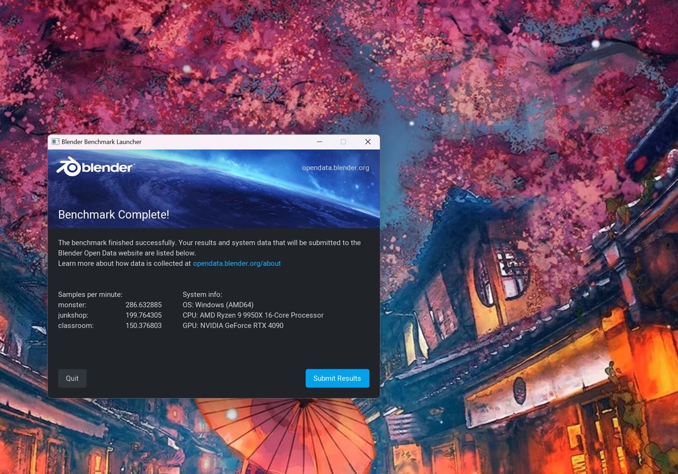 Otra prueba de renderizado, aunque esta mide el rendimiento en muestras por minuto y escala bastante bien con la frecuencia y con el número de núcleos. El Ryzen 9 9950X consigue 286,6 muestras por minuto en «Monster», 199,7 muestras por minuto en «Junkshop» y 150,3 muestras por minuto en «Classroom. El Ryzen 7 9700X logra en esas mismas pruebas 142,3, 100 y 76,7 muestras por minuto, lo que quiere decir que el Ryzen 9 9950X rinde el doble que aquel.