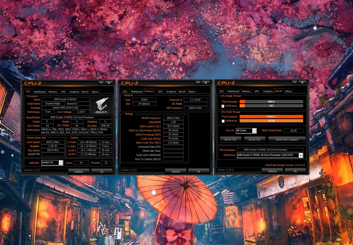 CPU-Z nos arroja un resultado de 886,9 en monohilo y 17.453,7 en multihilo, unos valores que superan claramente al Ryzen 9 7950X, que consigue 780 puntos y 15.834,1 puntos en monohilo y multihilo, respectivamente. La diferencia es del 13,72% en monohilo y del 10,22% en multihilo a favor del Ryzen 9 9950X.