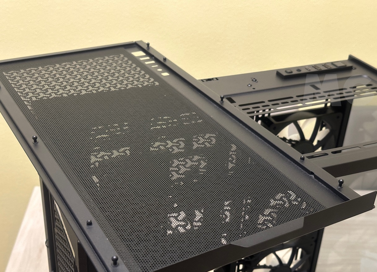 La ventana frontal y lateral nos ofrecen una vista panorámica completa del interior del equipo, lo que convierte a este chasis en un auténtico escaparate para mostrar al mundo nuestra configuración con todo lujo de detalles. En las zonas metálicas tenemos patrones de agujeros con una forma similar a una «Y» que permite la circulación del aire, y que están colocados en zonas clave.