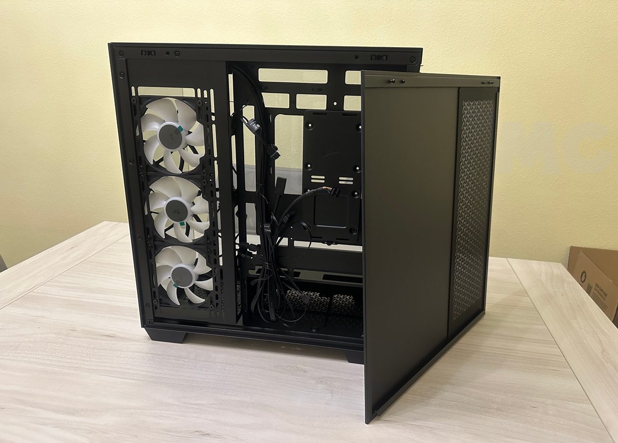Antes de cerrar el chasis y de afinar un poco el cableado de la parte trasera me gusta comprobar que todo ha ido bien, y en este caso no tuve ningún problema, todo fue como la seda. Una vez que llegué a Windows 11 y vi que todo estaba en orden apagué el equipo, terminé de gestionar el cableado y coloqué la ventana de cristal, el panel lateral y el panel superior.