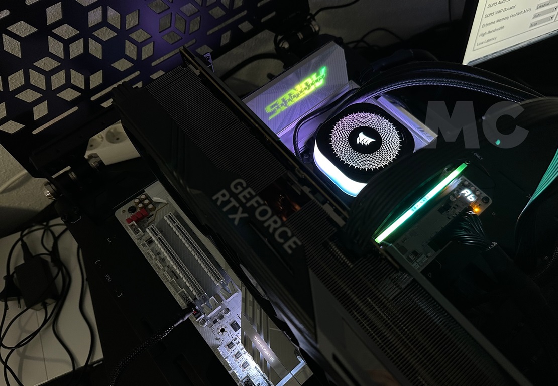 • Tarjeta gráfica GIGABYTE GeForce RTX 4090 Gaming OC ajustada para trabajar a la misma frecuencia que la Founders Edition. Esto era necesario para no introducir discrepancias importantes con los datos que tengo de análisis anteriores, y de actualizaciones de datos de rendimiento recientes que obtuve con una GeForce RTX 4090 FE.