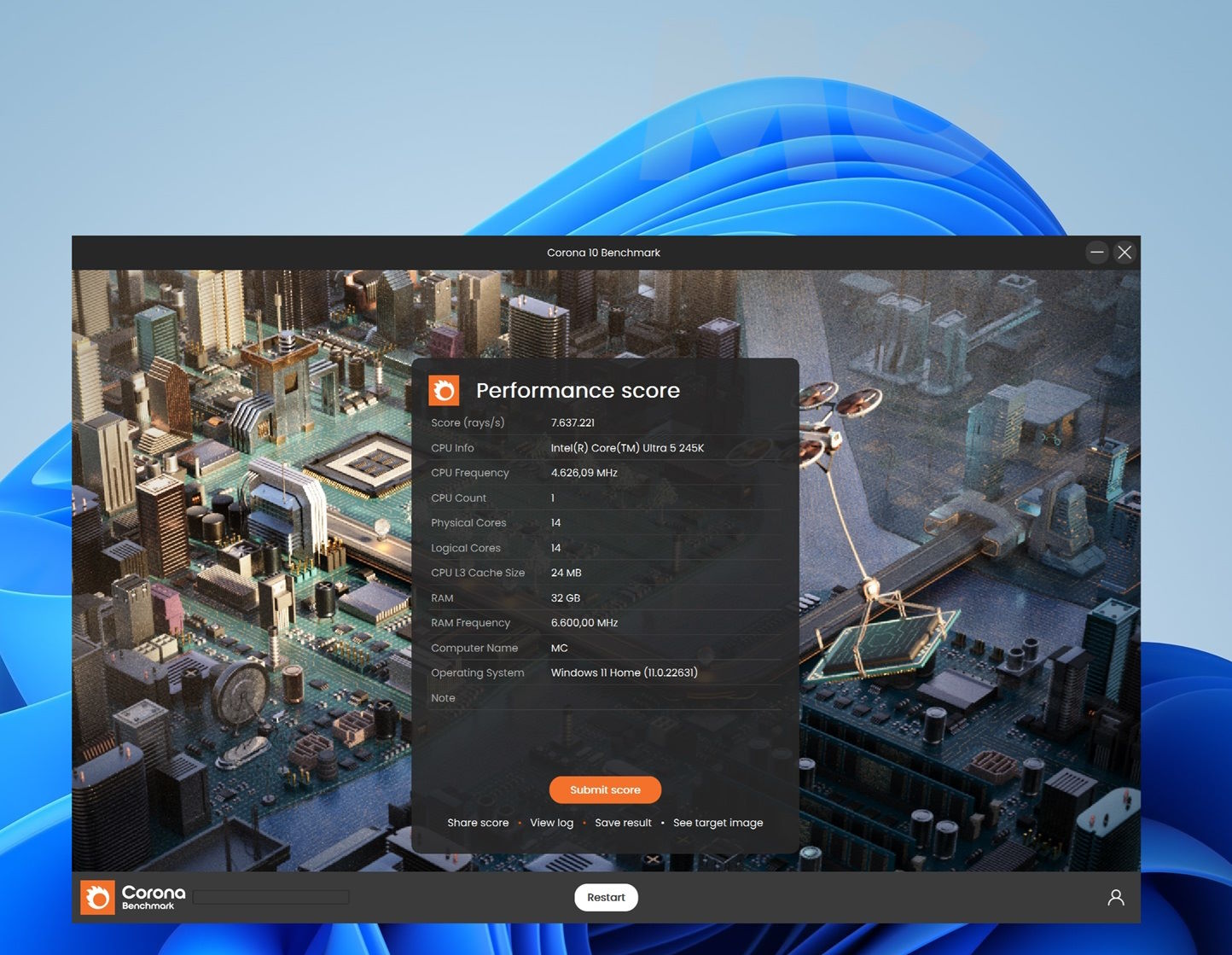 Para que podáis comparar, el Ryzen 7 9700X logra 38.239 puntos en esta prueba y el Intel Core i5-14600K queda en 37.991, lo que significa que el Intel Core Ultra 5 245K gana a ambos.