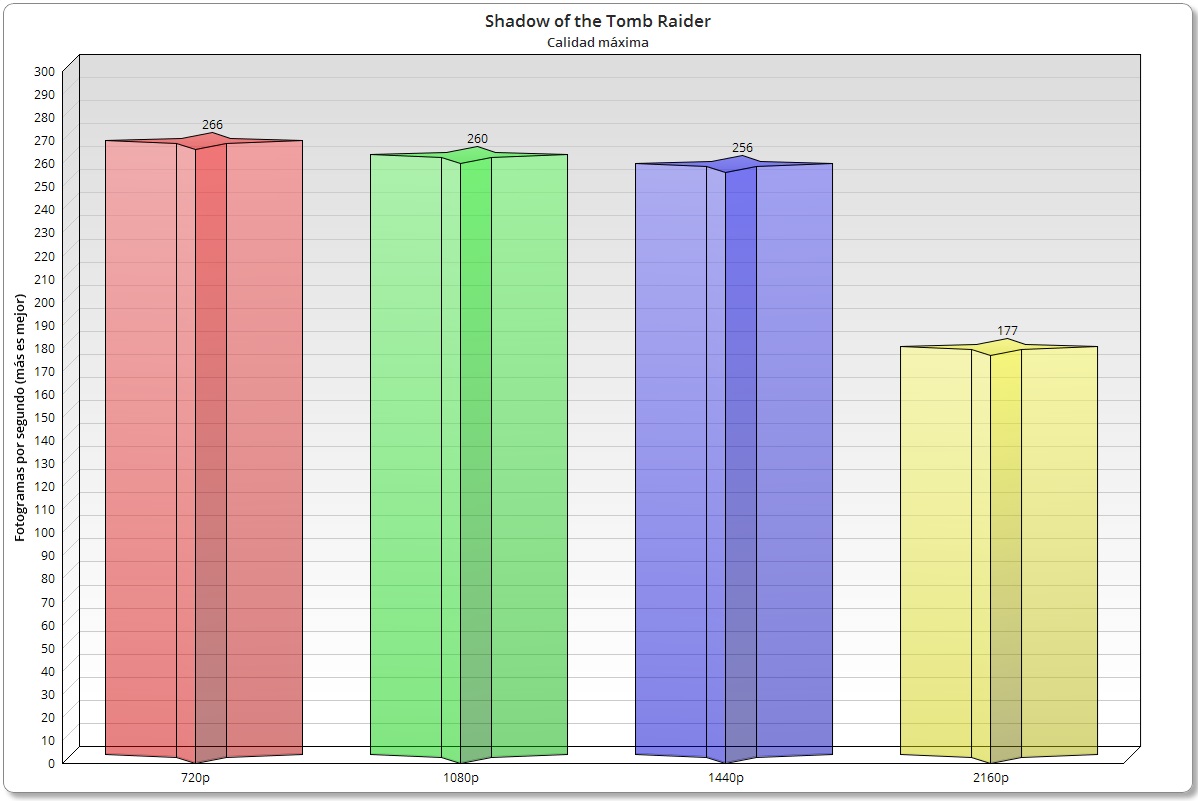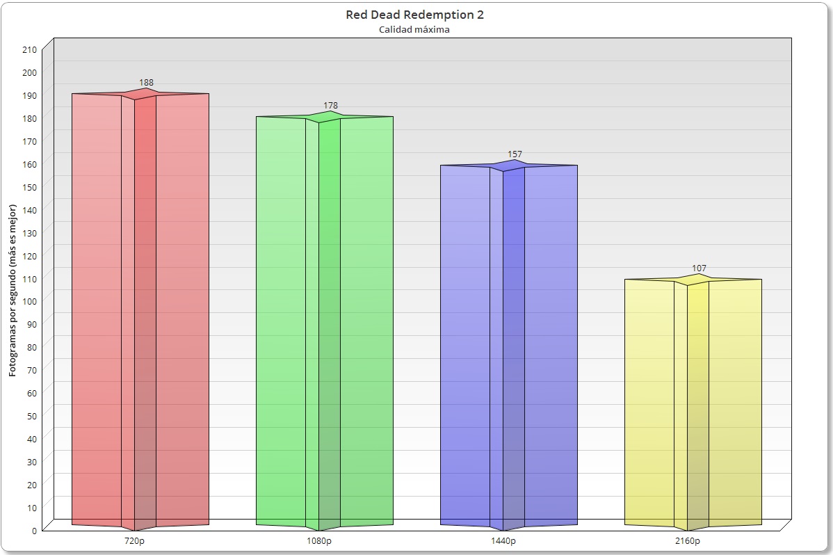 Para medir el rendimiento en juegos hay que tener en cuenta la resolución y la configuración gráfica. A menor resolución y menor calidad gráfica más impacto de la CPU, pero tampoco tiene sentido forzar configuraciones absurdas que en realidad no vamos a utilizar nunca, como 720p y calidad baja.