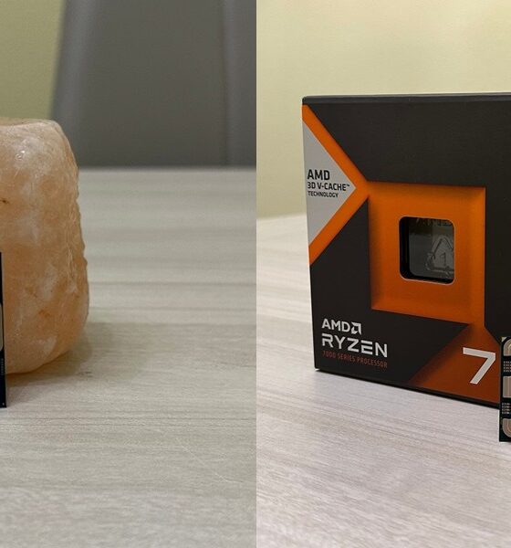 Los procesadores AMD Ryzen con caché apilada en 3D tienen un bloque extra de 64 MB de caché sobre un chiplet, lo que permite que ese chiplet tenga un total de 96 MB de caché L3 (32 MB + 64 MB). Esto mejora en gran medida el rendimiento del procesador en juegos, tanto que un modelo como el Ryzen 7 7800X3D funcionando a menos de 5 GHz puede rendir mejor en juegos que un Intel Core i9-14900KS funcionando a velocidades cercanas a los 6 GHz.