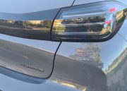 En la parte de atrás este Peugeot 208 GT Hybrid destaca por su aspecto musculoso, como ha venido siendo habitual en las versiones anteriores, con unos grupos ópticos traseros que al igual que comentábamos con las luces diurnas se ha utilizado esas tres marcas estilo «zarpazo de león» de Peugeot en este caso con diseño horizontal. Además de estos detalles en las luces la parte posterior dispone de un difusor en color negro brillante del estilo de los retrovisores y pasos de rueda además de una salida de escape cromada funcional que completan los guiños a la deportividad de este modelo. Finalmente el nombre de la marca aparece en letras grandes en la tira de material plástico que conecta los pilotos traseros.