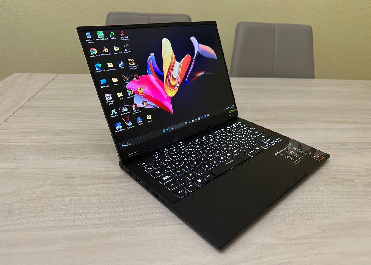 El ASUS TUF Gaming A14 ha superado esta primera ronda de pruebas con nota, sobre todo teniendo en cuenta que es un equipo muy ligero y de solo 14 pulgadas. No ha desentonado en ningún momento, y su capacidad para mover incluso aplicaciones y pruebas especializadas en IA es sorprendentemente buena. Obviamente esto se debe a su GeForce RTX 4060, que tiene hardware especializado para acelerar IA y trazado de rayos.