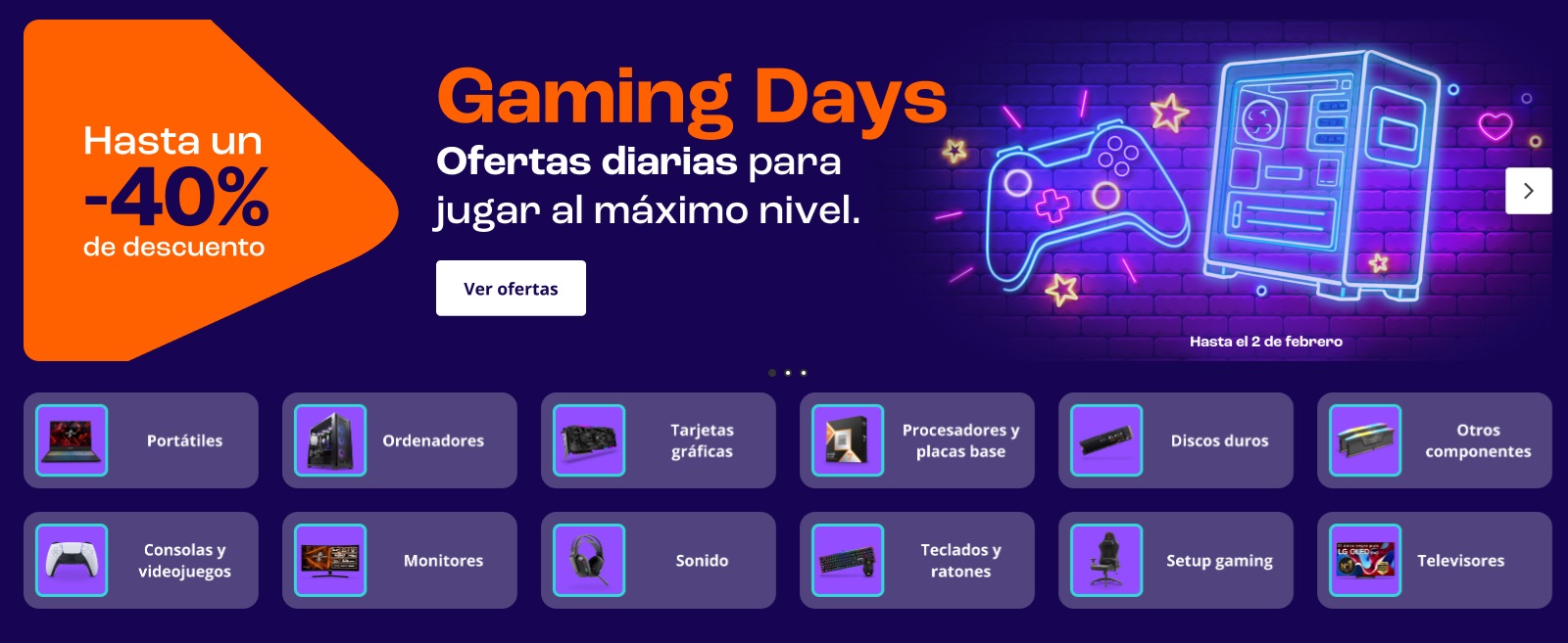 Estas ofertas estarán disponibles solo hasta el 2 de febrero, así que si no quieres perdértelas será mejor que no te lo pienses demasiado. Además del ahorro de hasta un 40% estas ofertas en gaming incluyen envío gratis a partir de 50 euros y devoluciones gratuitas con un plazo de hasta 30 días.
