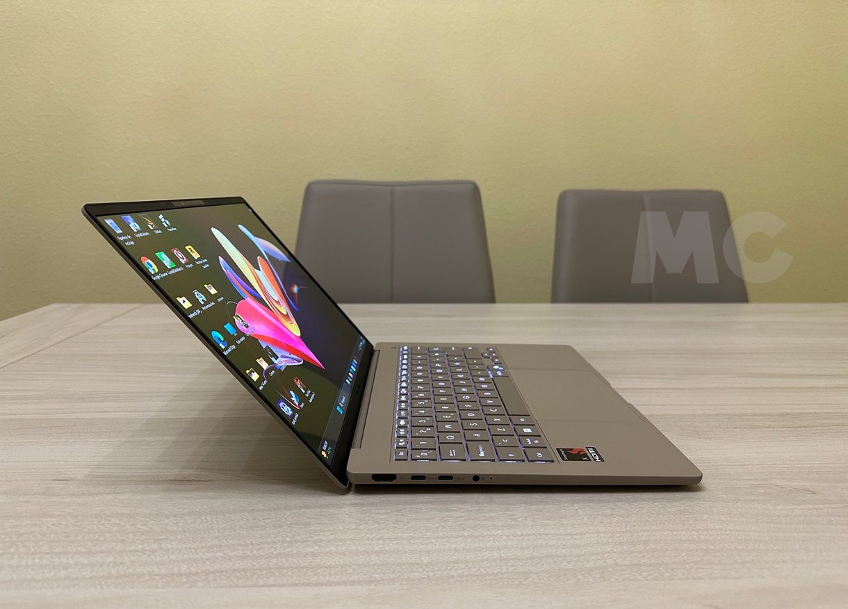 Tenemos un teclado de tipo chiclet con un tamaño bastante generoso por tecla para tratarse de un ultraportátil de solo 14 pulgadas y menos de un kilogramo de peso. Cada tecla tiene una ligera concavidad de 0,1 mm para mejorar la ergonomía, y un recorrido por pulsación de 1,3 mm, de lo mejor que podemos encontrar en su categoría.