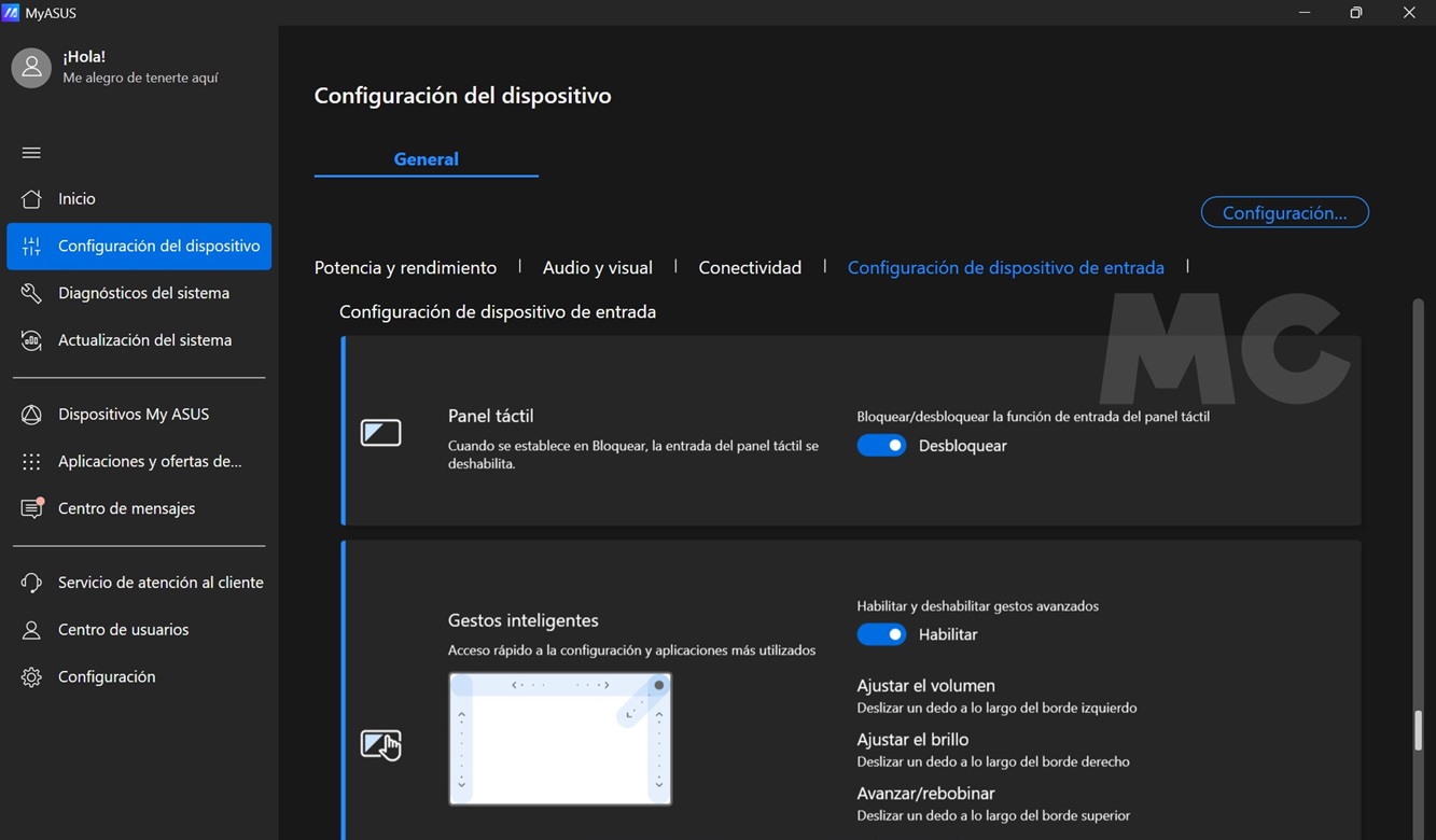 La iluminación LED en blanco tiene un buen nivel de brillo, facilita el uso del equipo incluso en condiciones de total oscuridad, y juega también un importante rol a nivel estético. La almohadilla táctil está a la altura, tiene un deslizamiento preciso y suave y marca los clics sin ningún problema. Los gestos táctiles inteligentes suponen un valor añadido que notamos en cuanto nos empezamos a acostumbrar a utilizarlos con frecuencia.