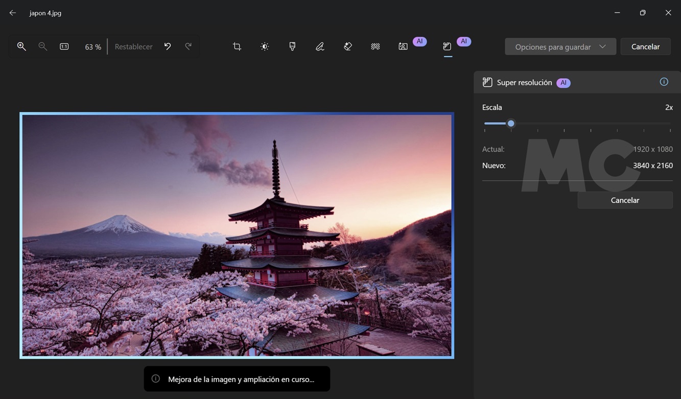 Super resolución nos ayudará a mejorar hasta en 8 veces la resolución de nuestras fotos más antiguas y de menor calidad. Es una función muy útil para recuperar y mejorar esas fotos antiguas que teníamos aparcadas.