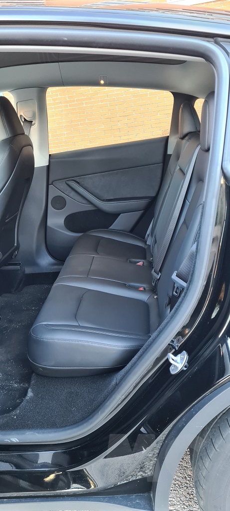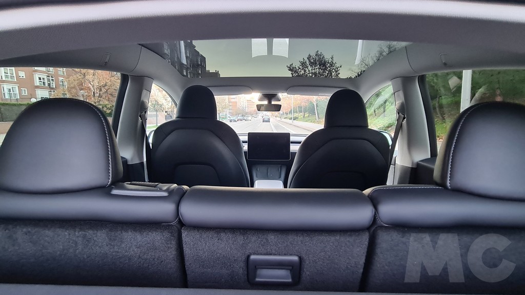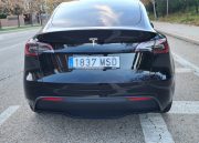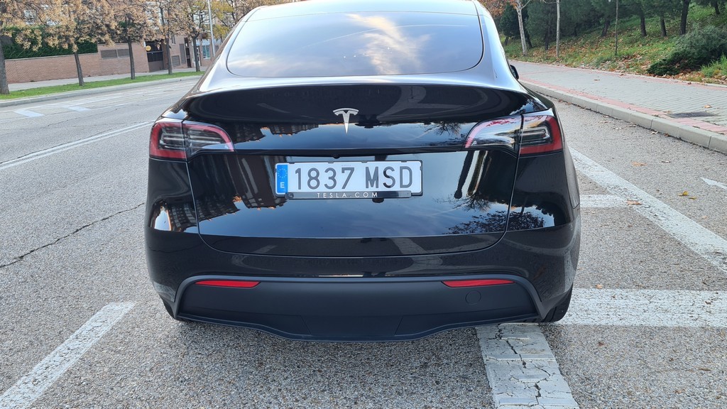 La parte posterior del Model Y sigue la misma filosofía minimalista del resto del vehículo. Su portón trasero de gran apertura es uno de sus puntos fuertes respecto a su hermano Model 3, ofreciendo un acceso mucho más práctico al espacio de carga que por otro lado es mucho más grande. Este elemento mejora también el acceso al maletero de la mayoría de los SUV en el mercado por lo que es un coche práctico en este sentido y saca partido del menor tamaño de motoro y las baterías en el suelo del coche con respecto a la disposición de las mecánicas tradicionales.