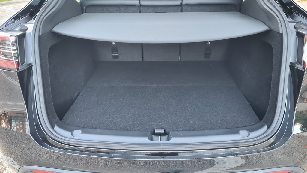La capacidad del maletero es una vez más uno de los puntos fuertes de este modelo, con 854 litros hasta el techo, a los que se suman los 117 litros del maletero delantero o como lo denomina la propia Tesla el «frunk». Con los asientos traseros abatidos, el espacio se amplía hasta los 2.158 litros, ofreciendo una versatilidad que coloca al Model Y casi en la categoría de furgoneta, si no fuera por la ausencia de accesorios como bolsas para llevar objetos pequeños. El acceso al maletero mediante el gran portón trasero supone una ventaja significativa frente al Model 3.