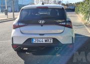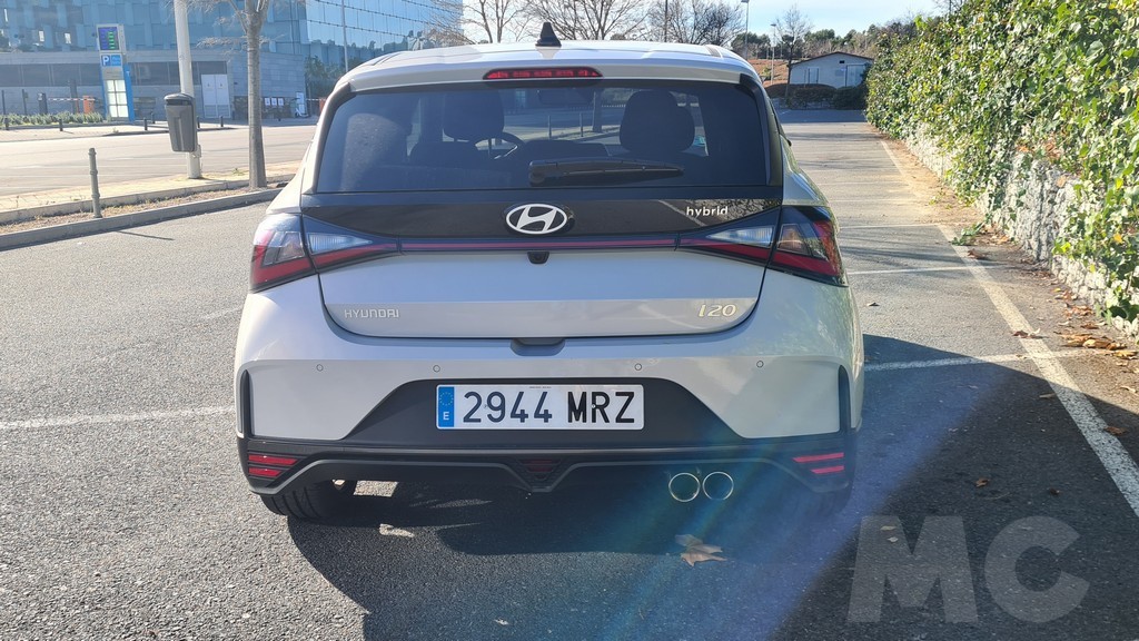 En la zaga, el i20 N Line exhibe un diseño que nos recuerda a algunos compactos japoneses con ínfulas deportivas. Hay varios detalles que dan ese toque más racing como los grupos ópticos que tienen forma de boomerang más acentuada que en la generación anterior y que están conectados visualmente por una moldura transparente de plástico de forma horizontal o el spoiler trasero específico de esta versión, junto con un difusor en la parte inferior del paragolpes. El toque final es sin duda es el sistema de escape con doble salida cromada, exclusivo de la versión N Line. En conjunto, las dimensiones del i20 N Line (4.075 mm de largo, 1.775 mm de ancho y 1.455 mm de alto) representan un incremento respecto a la generación anterior, con una distancia entre ejes también mayor (2.580 mm), lo que beneficia tanto al aspecto exterior como al espacio interior.
