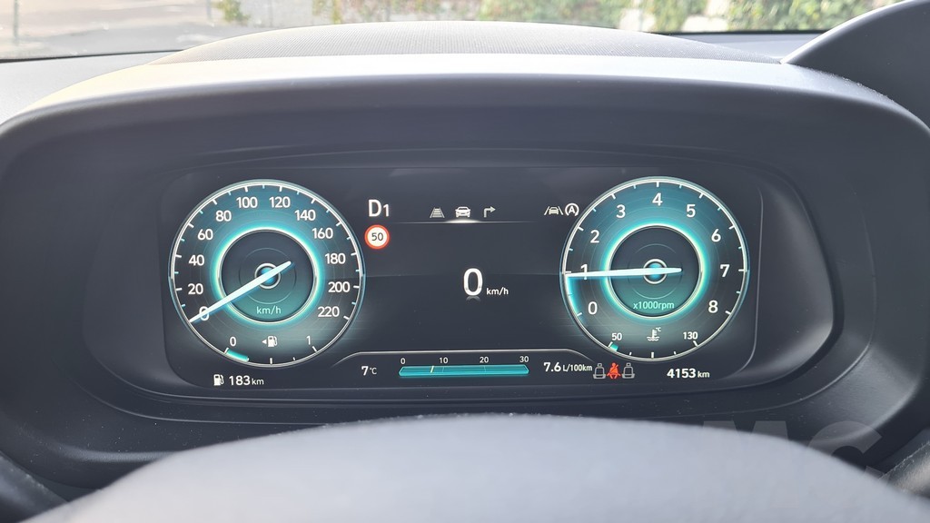 Otra de las tendencias del mercado es dotar a los modelos compactos de tecnología hasta ahora al servicio de loc coches más altos de gama. En el i20 el cuadro de instrumentos digital de 10,25 pulgadas es uno de los puntos fuertes de este, ofreciendo una visualización clara y personalizable de la información. Se complementa perfectamente con la pantalla táctil del sistema de información y entretenimiento, también de 10,25 pulgadas. Este sistema es compatible con Android Auto y Apple CarPlay de forma inalámbrica, y se complementa con la conectividad Bluelink de Hyundai, que permite controlar diversas funciones del vehículo remotamente desde el smartphone.