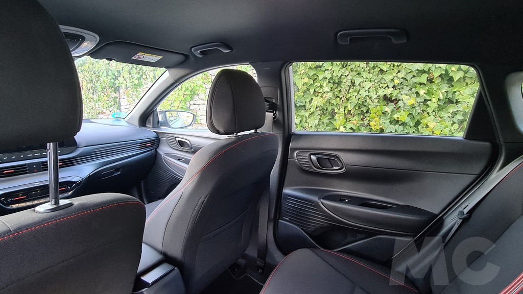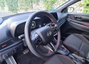 El interior del i20 N Line también busca transmitir ese enfoque deportivo sin renunciar a una calidad de materiales y acabados que va en aumento y que ya aleja definitivamente la imagen que tenían los coches de esta marca en el pasado. Los asientos deportivos tipo baquet con el logo «N» y costuras rojas exclusivas llaman la atención nada más abrir la puerta y son la parte más diferenciadora de este acabado. El volante multifunción deportivo, forrado en cuero perforado también da otro toque exclusivo. Además tiene un tacto agradable y se maneja bien con un agarre adecuado incluso para una conducción algo más dinámica.
