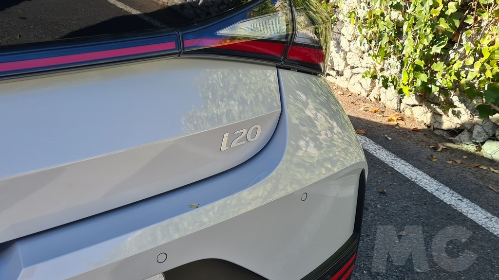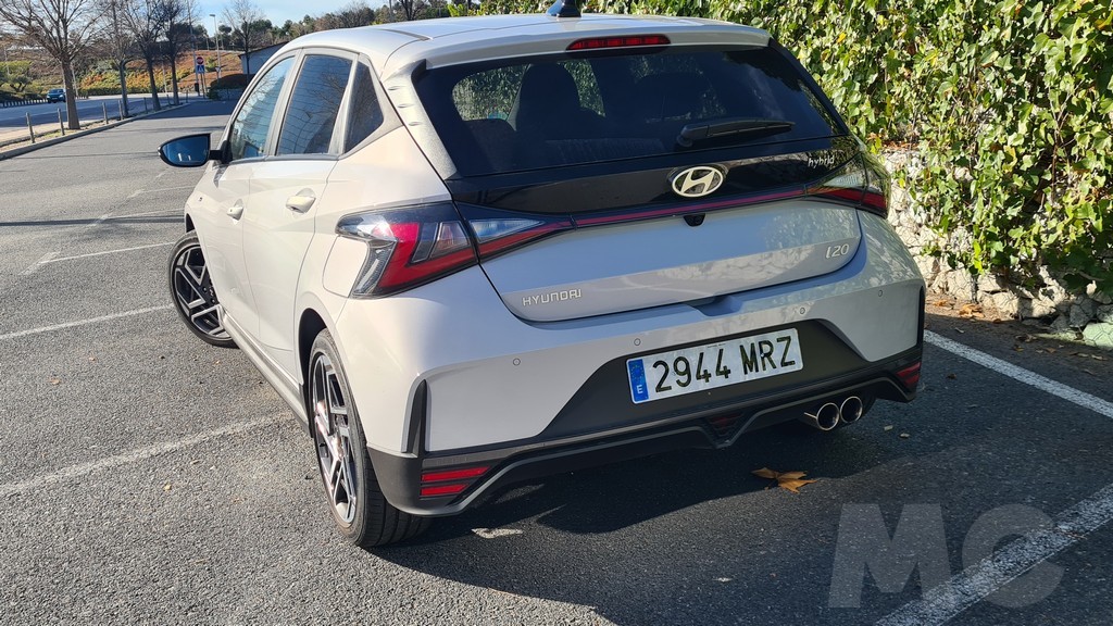 En la zaga, el i20 N Line exhibe un diseño que nos recuerda a algunos compactos japoneses con ínfulas deportivas. Hay varios detalles que dan ese toque más racing como los grupos ópticos que tienen forma de boomerang más acentuada que en la generación anterior y que están conectados visualmente por una moldura transparente de plástico de forma horizontal o el spoiler trasero específico de esta versión, junto con un difusor en la parte inferior del paragolpes. El toque final es sin duda es el sistema de escape con doble salida cromada, exclusivo de la versión N Line. En conjunto, las dimensiones del i20 N Line (4.075 mm de largo, 1.775 mm de ancho y 1.455 mm de alto) representan un incremento respecto a la generación anterior, con una distancia entre ejes también mayor (2.580 mm), lo que beneficia tanto al aspecto exterior como al espacio interior.