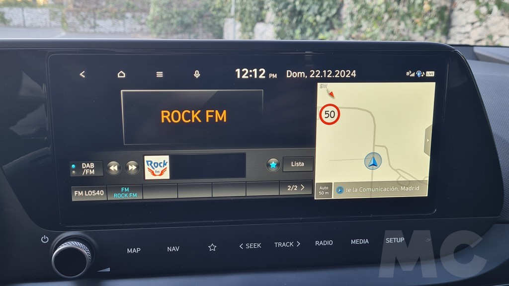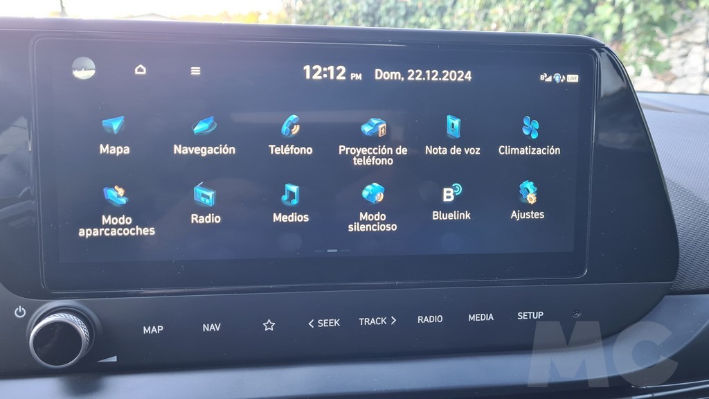 Otra de las tendencias del mercado es dotar a los modelos compactos de tecnología hasta ahora al servicio de loc coches más altos de gama. En el i20 el cuadro de instrumentos digital de 10,25 pulgadas es uno de los puntos fuertes de este, ofreciendo una visualización clara y personalizable de la información. Se complementa perfectamente con la pantalla táctil del sistema de información y entretenimiento, también de 10,25 pulgadas. Este sistema es compatible con Android Auto y Apple CarPlay de forma inalámbrica, y se complementa con la conectividad Bluelink de Hyundai, que permite controlar diversas funciones del vehículo remotamente desde el smartphone.