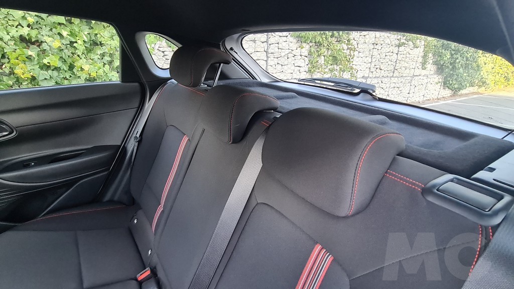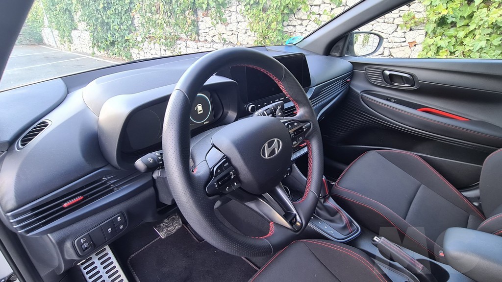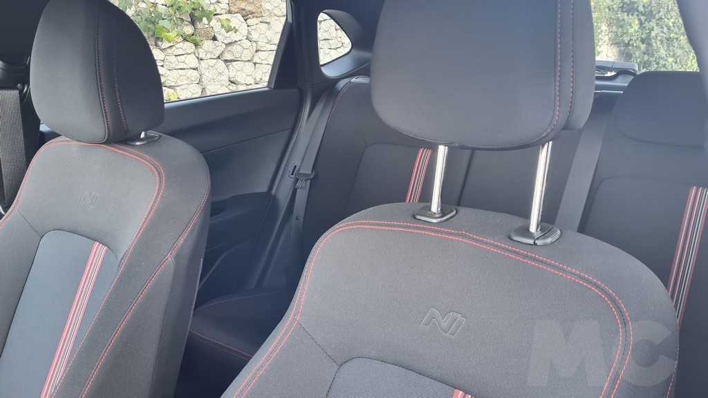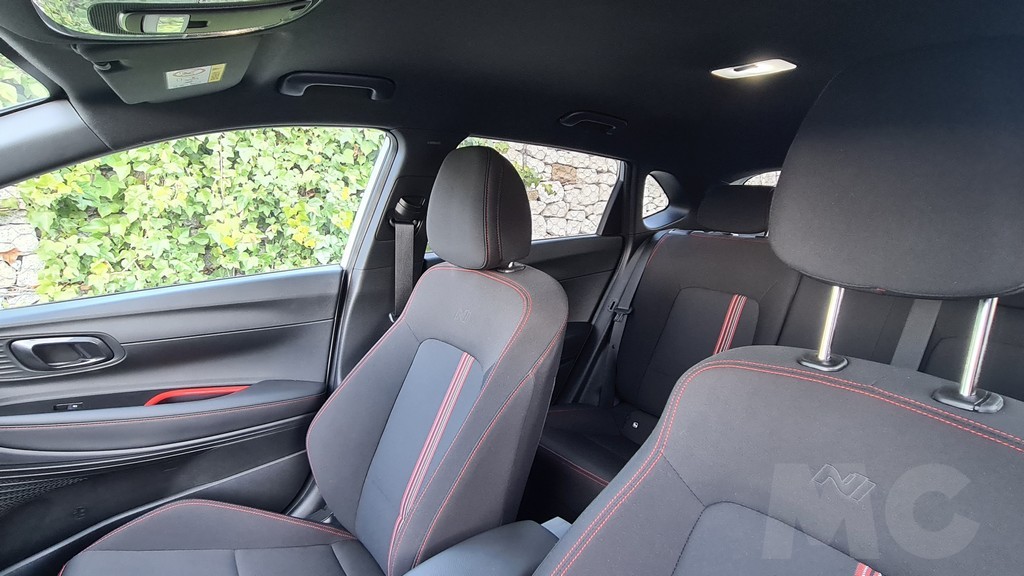 Además de la imagen deportiva, los asientos delanteros ofrecen un buen soporte lateral, ideal para una conducción deportiva, sin sacrificar la comodidad en trayectos largos gracias a un buen diseño y acolchado. La posición de conducción es excelente, con un volante ajustable en altura y profundidad, y un asiento del conductor con regulación en altura que permite encontrar rápidamente la postura ideal para cualquier estatura del conductor. Los pedales metálicos, la palanca de cambios N con inserciones rojas y los detalles en color rojo distribuidos estratégicamente por el habitáculo completan la atmósfera deportiva.