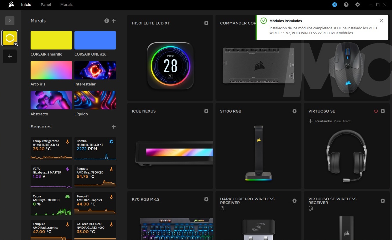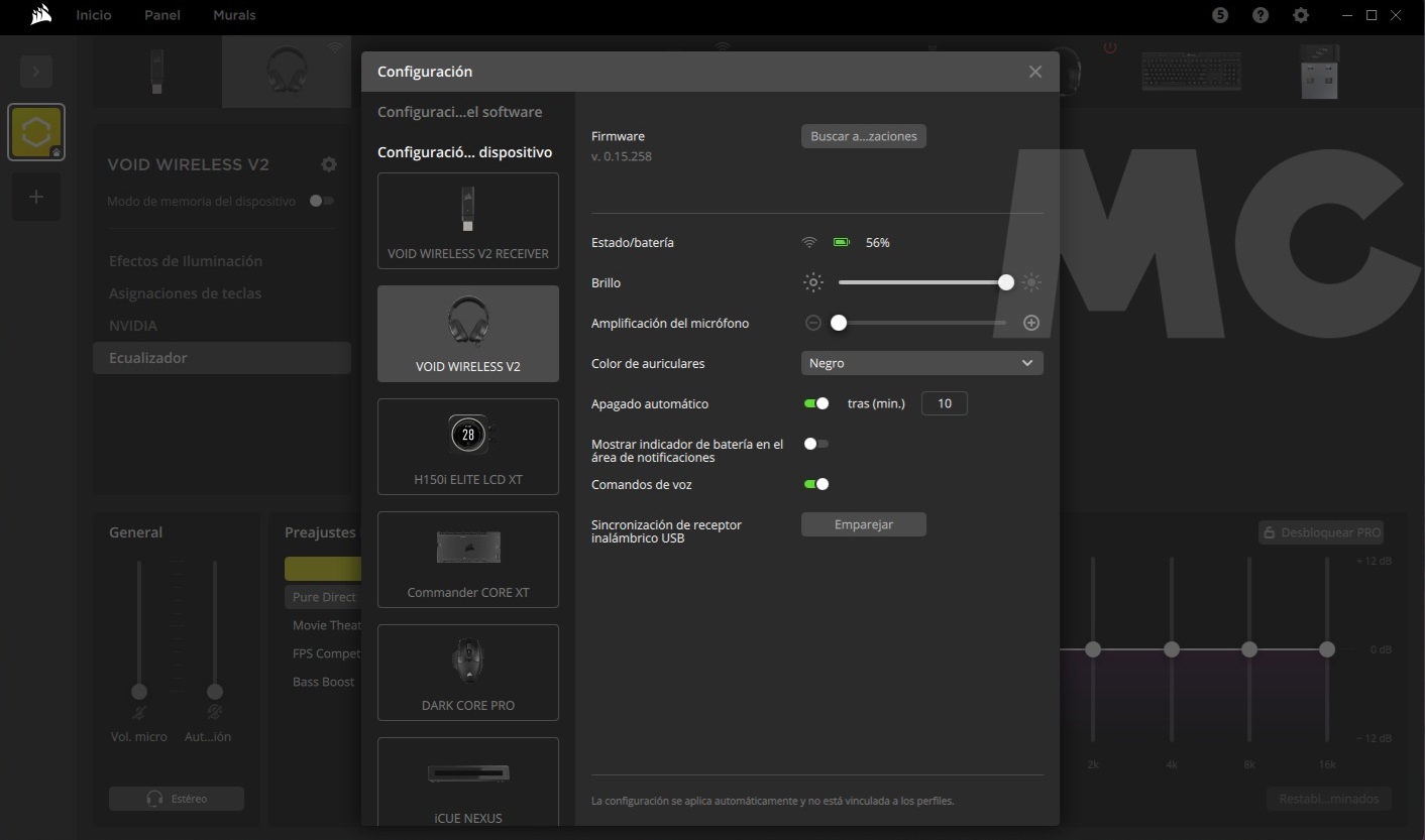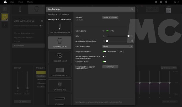 El proceso de instalación y configuración de los Corsair VOID WIRELESS v2 es muy sencillo. Windows 11 los reconoce sin problemas y de forma directa, pero para sacarles el máximo partido debemos descargar iCUE, una aplicación totalmente gratuita que nos dará acceso a numerosas funciones avanzadas, y que nos permitirá también disfrutar de diferentes opciones de personalización.