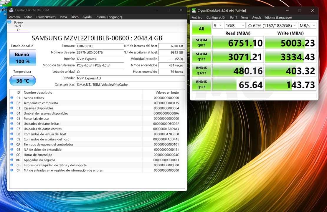 - Unidad SSD de 2 TB PCIe Gen4 que supera los 6 GB/s en lectura secuencial.