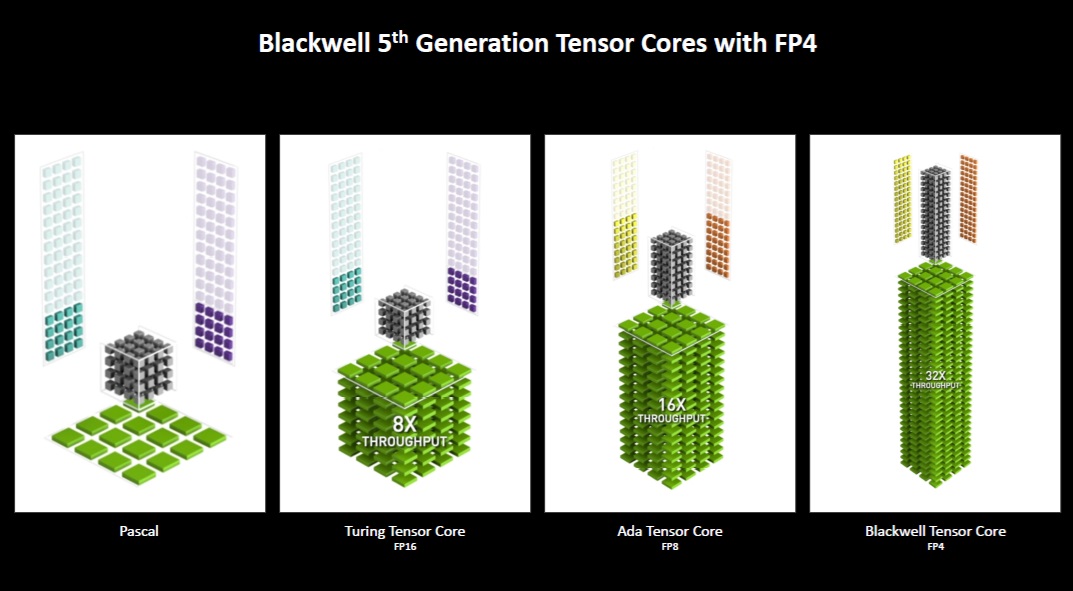 Los núcleos tensor de quinta generación que utiliza la arquitectura Blackwell doblan la potencia de salida de los núcleos tensor de cuarta generación, y además tienen otra novedad muy importante, y es que son capaces de trabajar con operaciones en FP4, lo que permite mejorar notablemente el rendimiento en cargas de trabajo que no requieran de un mayor grado de precisión.