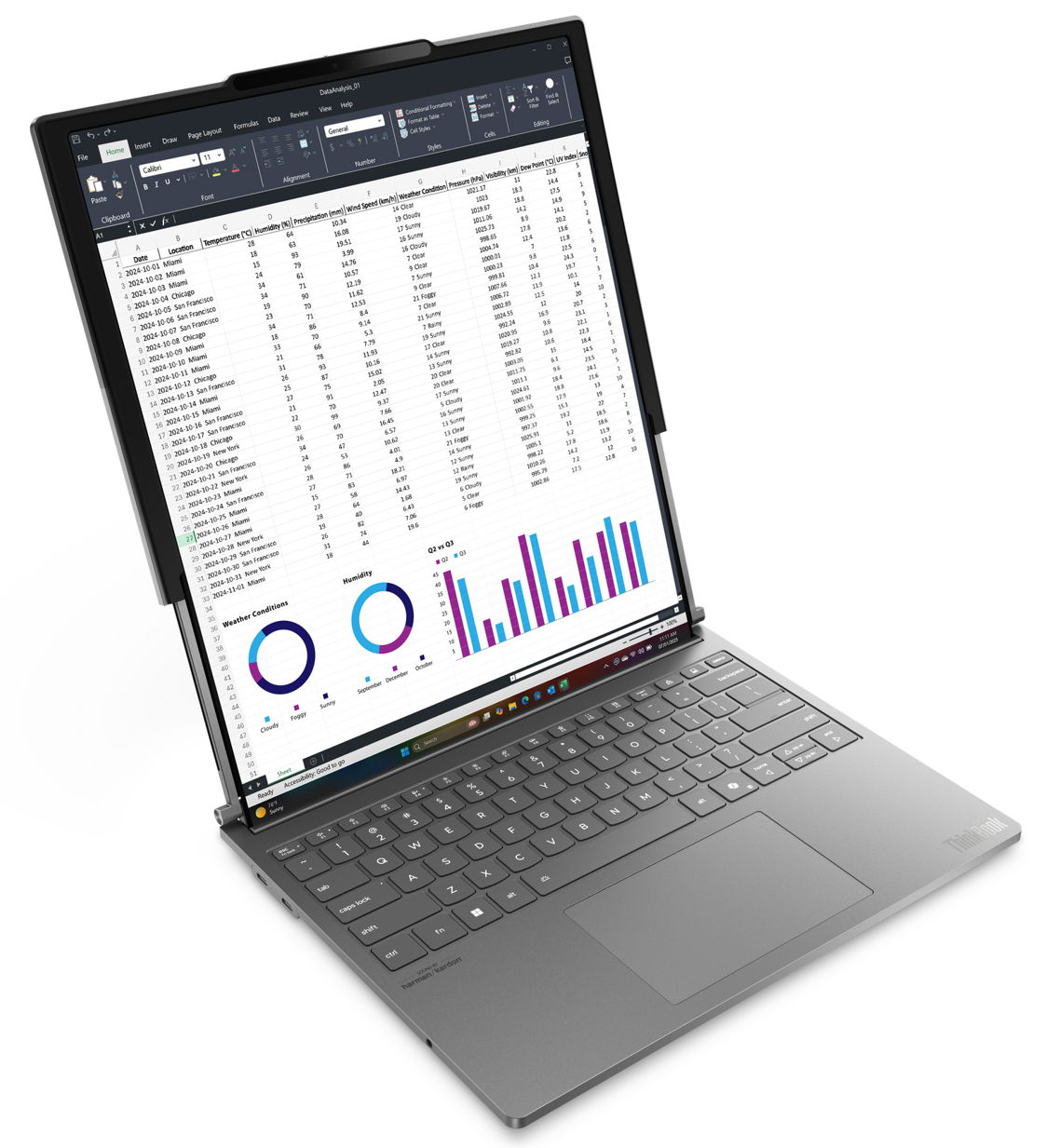 A pesar del mecanismo de despliegue de la pantalla, y de su ampliación, el peso se contiene en 1,69 kilos. Cuando está cerrado, tiene un grosor de 19,9 milímetros. Dispone de un teclado ThinkBook con ForcePad incluido, cuenta con puertos Thunderbolt 4 y conectividad inalámbrica Wi-Fi 7. Su base hardware es responsabilidad de los procesadores Intel Core Ultra 7 Series 2, junto a una gráfica dedicada Intel Arc. Puede equipar hasta 32 Gbytes de RAM y para almacenamiento dispone de una SSD con capacidad de 1 Tbyte.