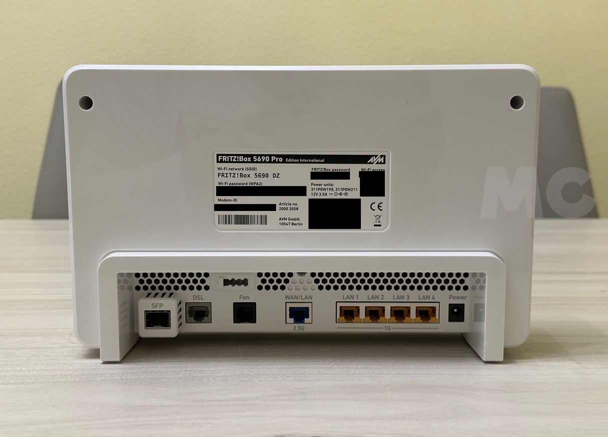- Conectividad a Internet cableada: un puerto WAN/LAN a 2,5 Gbps, cuatro puertos LAN Gigabit (1 Gbps). Incluye un puerto para conexiones DSL compatible con VDSL, incluyendo Supevectoring y ADSL2+, aunque ya no se utiliza en España.