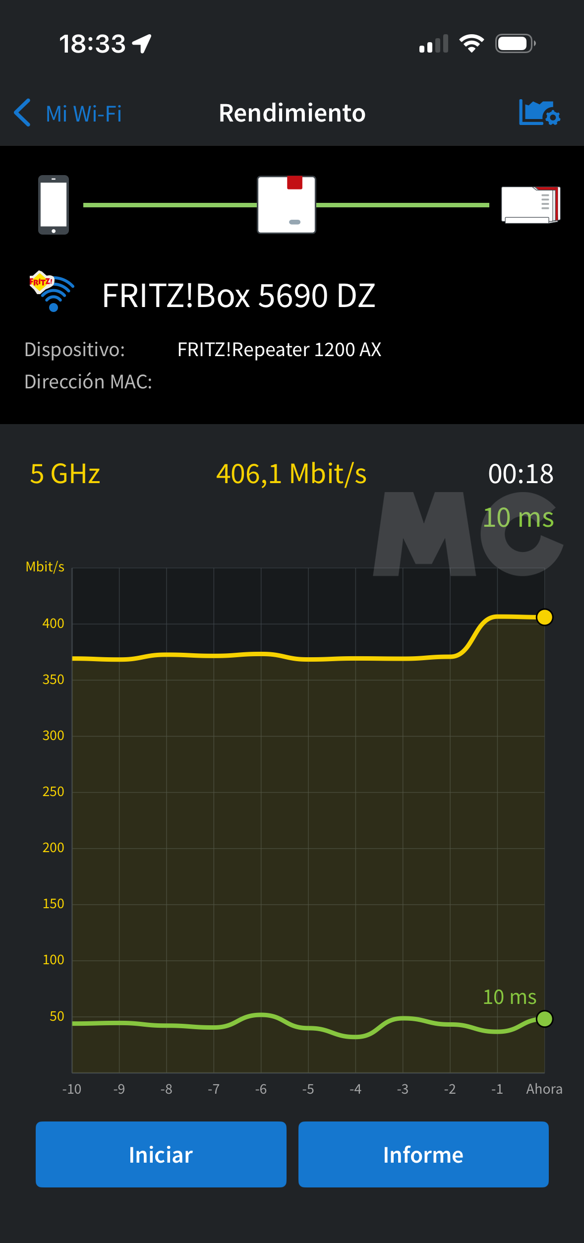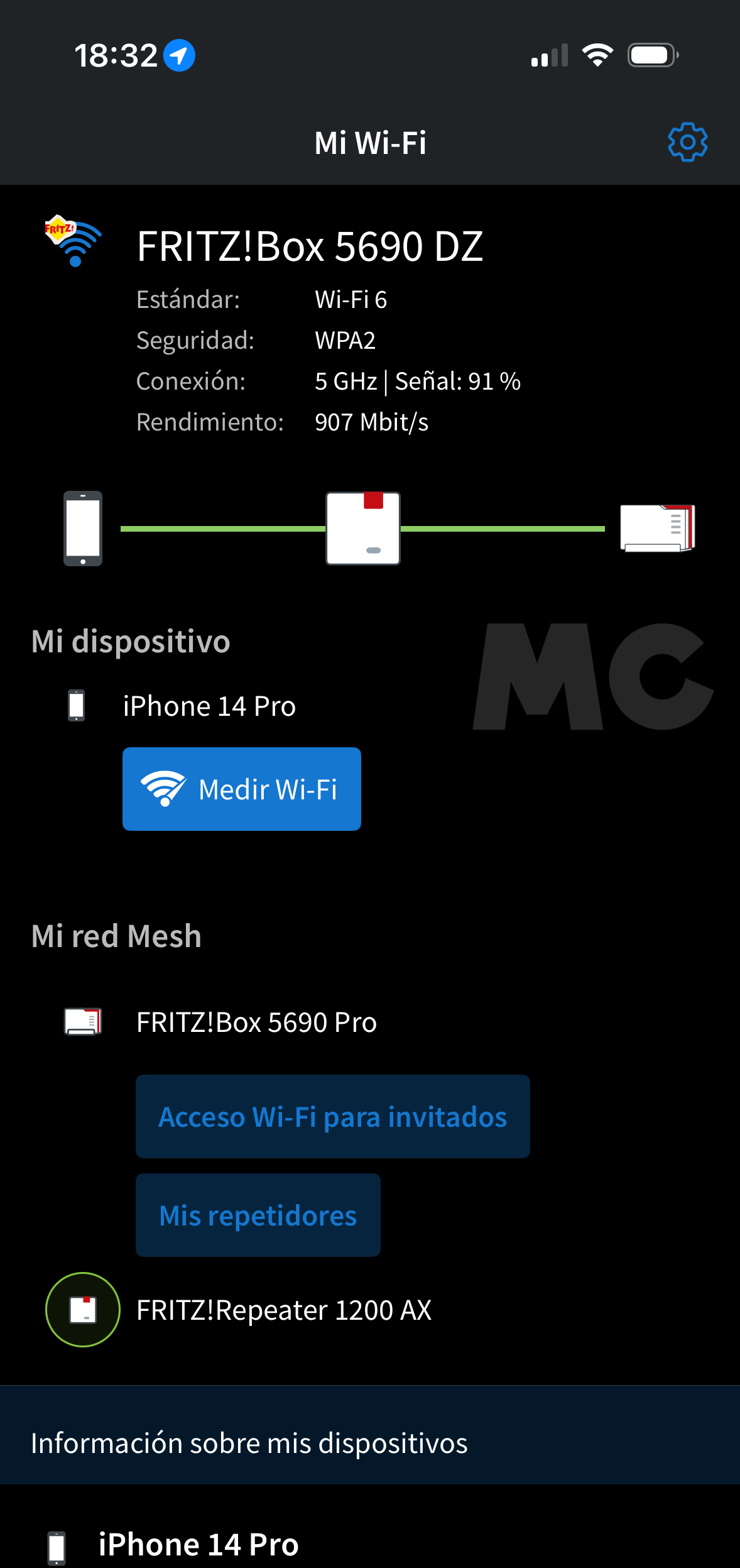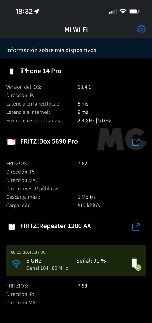 En mi caso, he probado esta función con un repetidor FRITZ!Repeater 1200 AX, y la experiencia de uso ha sido perfecta. Cuando estoy en el salón o en la habitación principal todos los dispositivos se conectan al repetidor automáticamente, y tanto la cobertura como la velocidad son óptimos. Cuando me acerco a la mitad del pasillo de casa la conexión vuelve al router.