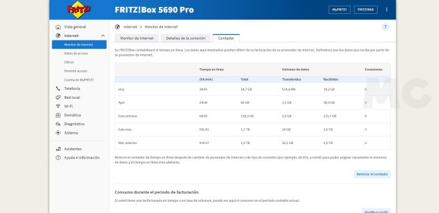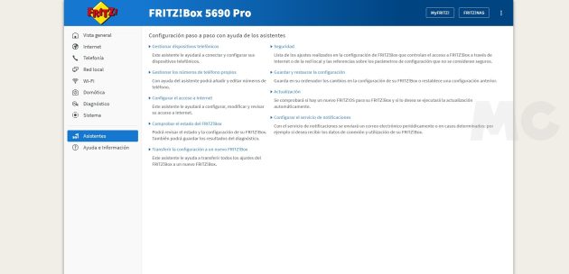 Es lógico. La mayoría de los routers tienen una interfaz que no es nada amigable, y esto no hace más que reforzar ese sentimiento de miedo a tocar algo por si el router, nuestra conexión a Internet o ambos dejan de funcionar correctamente. Con el FRITZ!Box 5690 Pro esto desaparece por completo, la interfaz de FRITZ!OS nos anima a recorrer la interfaz del router, a aprender y a interaccionar con ella, y esto representa un gran valor.