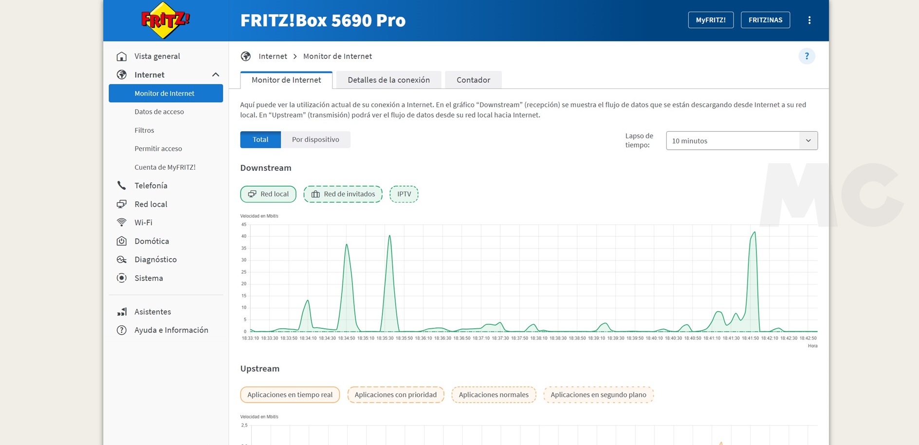 Hablé con mi operadora para un cambio de router, pero esto tampoco solucionó el problema. Como ha sido una constante tan molesta estaba expectante a ver si podía resolverlo por fin con el FRITZ!Box 5690 Pro, y así ha sido. He llegado a estar cuatro horas seguidas de maratón viendo series con el PC descargando en segundo plano y cero problemas.