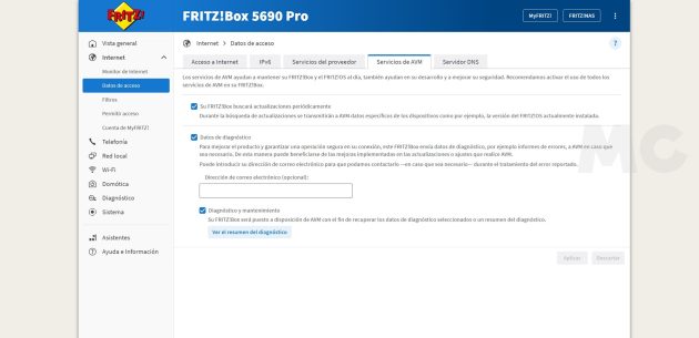 - Integración en el ecosistema MyFRITZ!, que nos permite acceder al FRITZ!Box de forma segura desde cualquier ubicación.