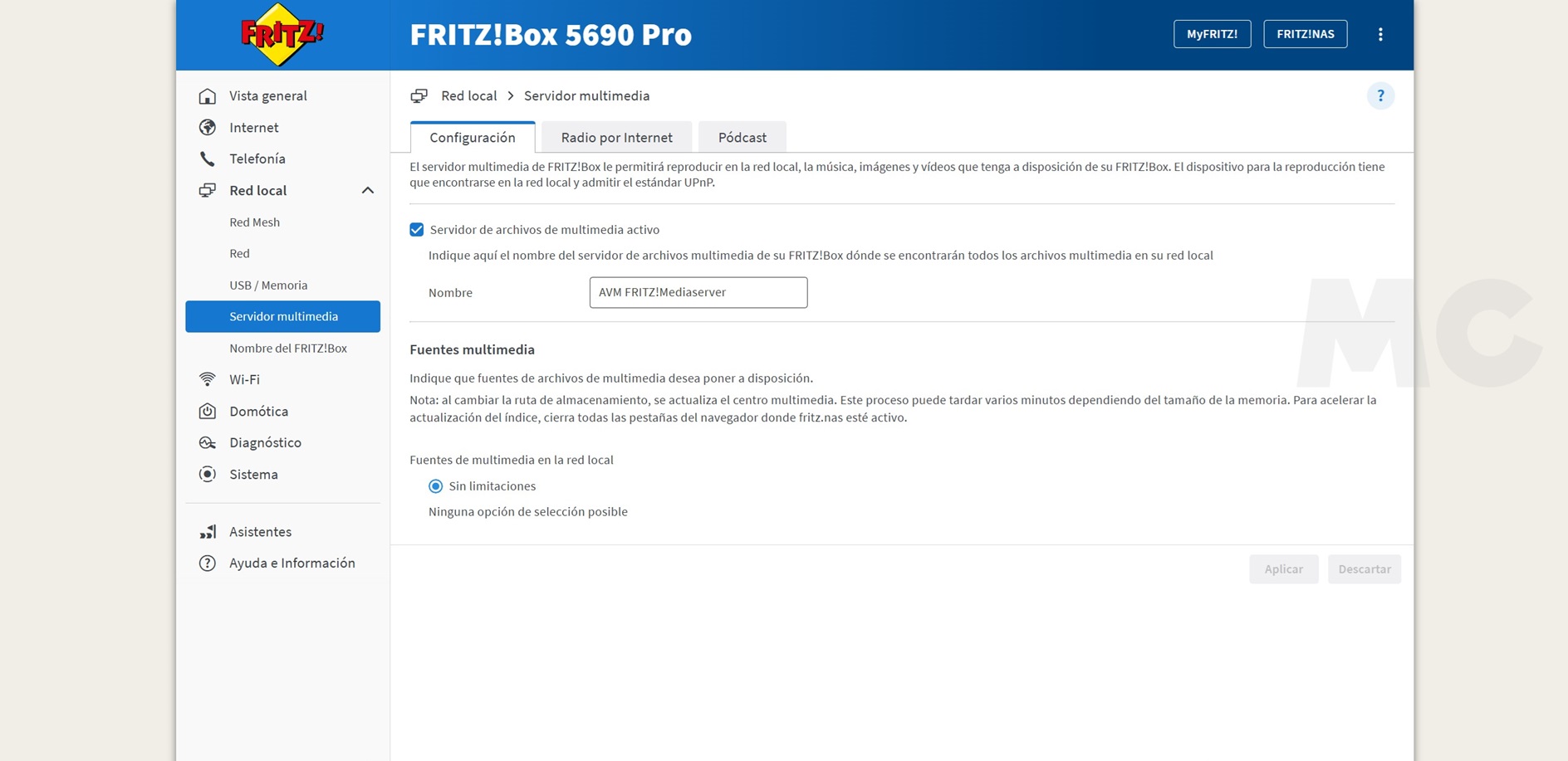 - Podremos crear un servidor multimedia con música, imágenes o vídeos disponibles en nuestra red local (DLNA/UpnP AV).