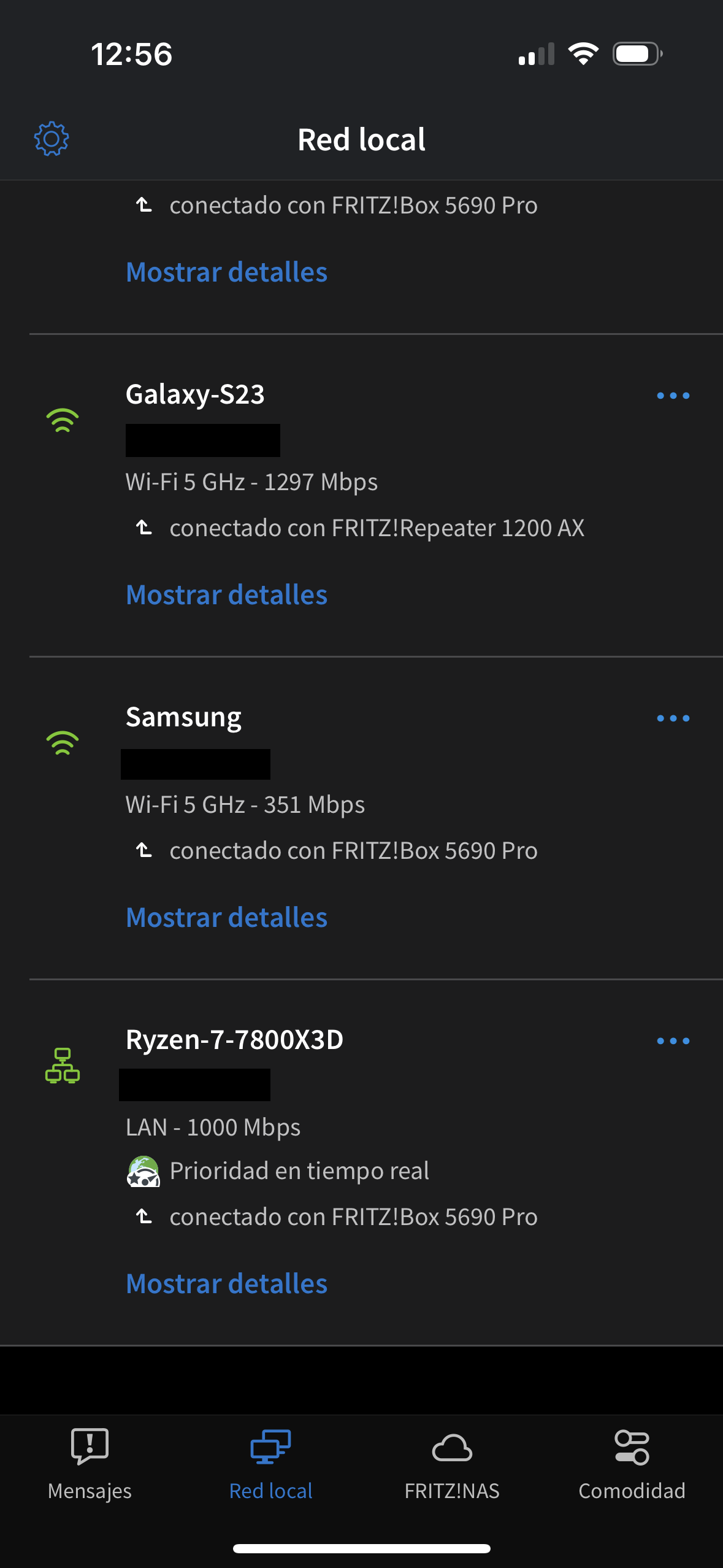 Otra forma de dar prioridad a un dispositivo es a través de la aplicación MyFRITZ!, que es totalmente gratuita. Solo tenemos que descargarla, la abrimos y tocamos en el menú contextual de tres puntos del dispositivo al que queramos dar prioridad.