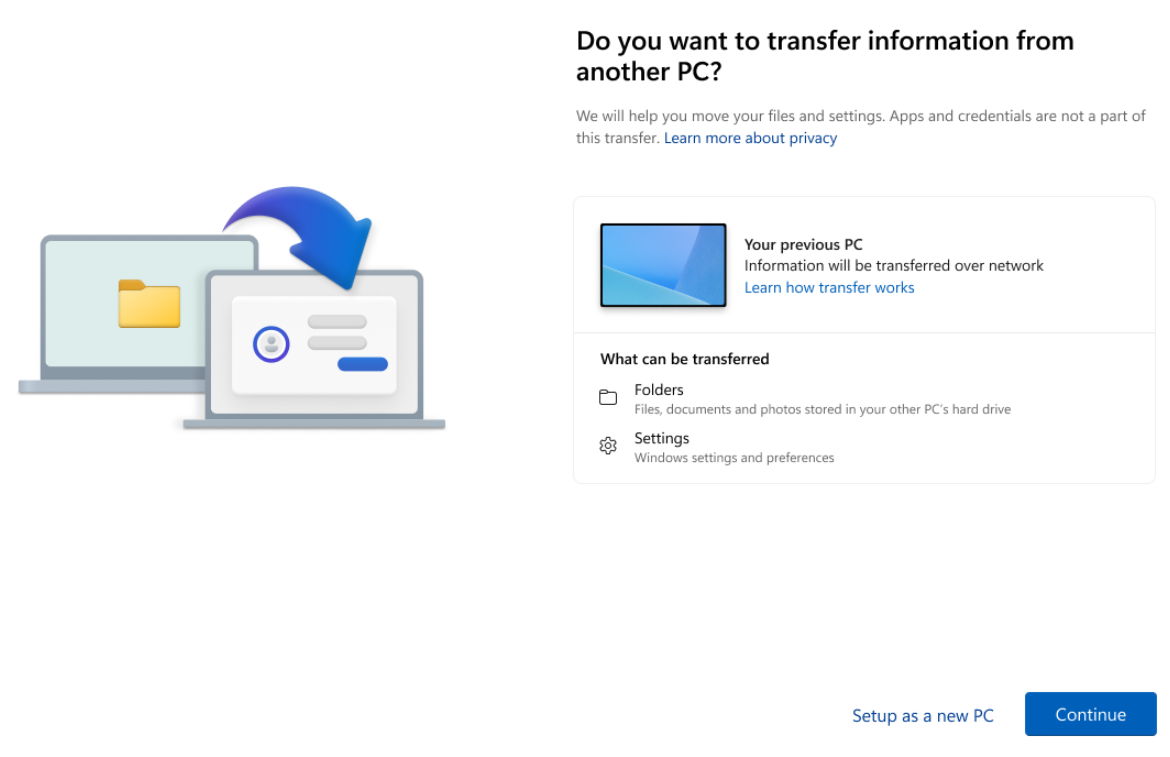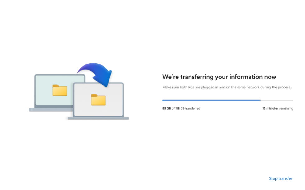 Microsoft ha presentado una nueva experiencia para transferir archivos a nuevos PC con Windows, con una función que copia automáticamente archivos, configuraciones y preferencias de usuario desde una computadora a otra.