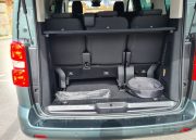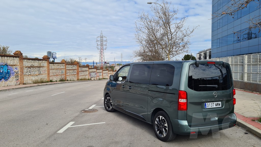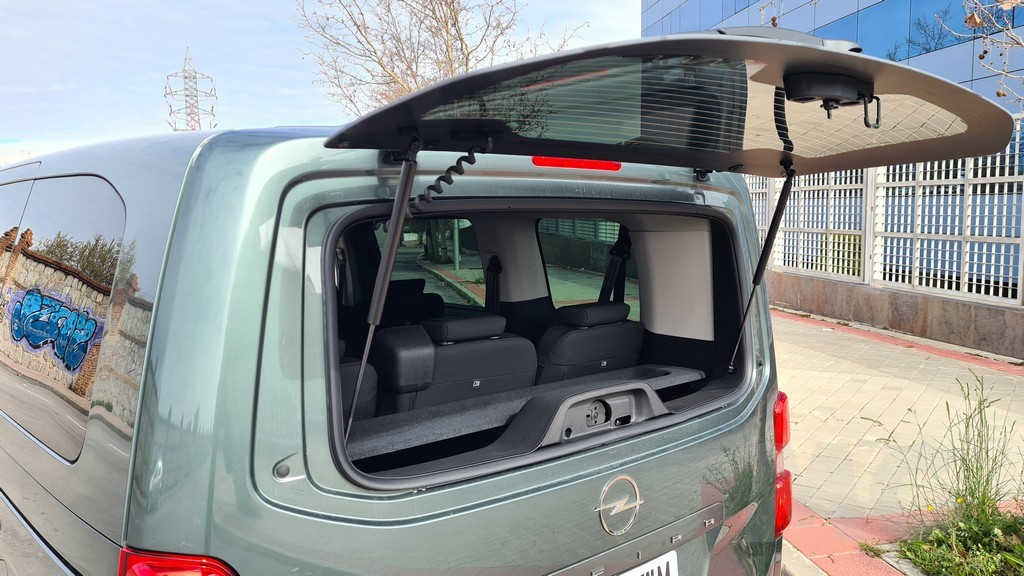 La zaga del Zafira-e sigue la misma filosofía de pragmatismo. Está dominada por un portón trasero de proporciones gigantescas, diseñado para facilitar al máximo las operaciones de carga y descarga. Un detalle de gran inteligencia práctica, heredado de sus hermanos de grupo, es la luneta trasera practicable. Esta permite acceder al contenido del maletero sin necesidad de abrir el enorme portón, una solución muy útil en aparcamientos estrechos o cuando solo se necesita depositar un objeto pequeño. Los enormes grupos ópticos dispuestos verticalmente también siguen la estética de los vehículos comerciales con la practicidad de aumentar la visibilidad con las luces de marcha atrás y advertir al resto del tráfico de que se trata de un vehículo de cierto tamaño.