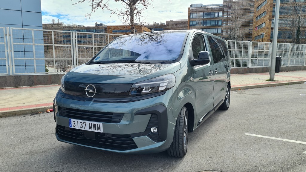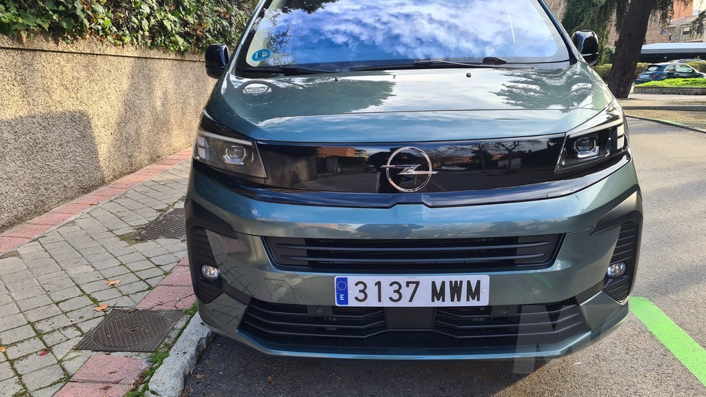 La estética del Opel Zafira-e es un ejercicio de diseño puramente funcional. No intenta disfrazar sus orígenes comerciales, sino que los abraza para maximizar su principal virtud: el espacio, igual que lo hacía su antepasado aunque con una estética más de turismo. La transformación más notable en su última actualización se encuentra en el frontal, donde adopta el «Opel Vizor», el nuevo rostro de la marca que ya hemos visto en modelos como el Mokka o el Astra. Este elemento consiste en un panel negro brillante que integra de forma fluida la parrilla y los faros, creando una superficie lisa y horizontal que le confiere un aspecto más moderno y tecnológico. Es una máscara estilizada y efectiva que logra conectar visualmente a esta furgoneta con el resto de la gama de turismos de Opel, un intento exitoso de dotarla de una identidad de marca más allá de su utilidad.