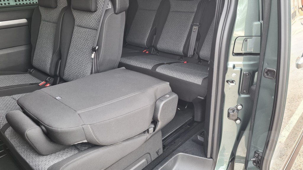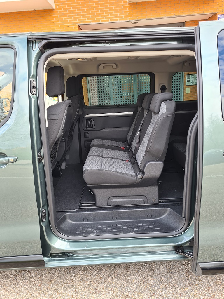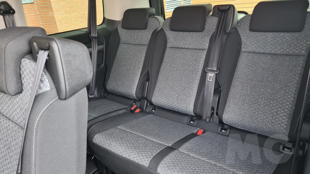 La verdadera magia del Zafira-e reside en el espacio para los pasajeros. Con capacidad para hasta nueve ocupantes en algunas configuraciones, su habitabilidad es sencillamente colosal. En la versión GS que probamos disponemos de ocho plazas con asietnos individuales. Estos asientos son extremadamente cómodos, cuentan con reposabrazos individuales y, lo más importante, están montados sobre raíles en el suelo. Esto permite una modularidad casi infinita: se pueden deslizar para configurar el espacio para las piernas o incluso desmontarse por completo para transformar el vehículo en una furgoneta de carga. El suelo completamente plano facilita el movimiento entre las filas, una ventaja impensable en la mayoría de los SUV de siete plazas.